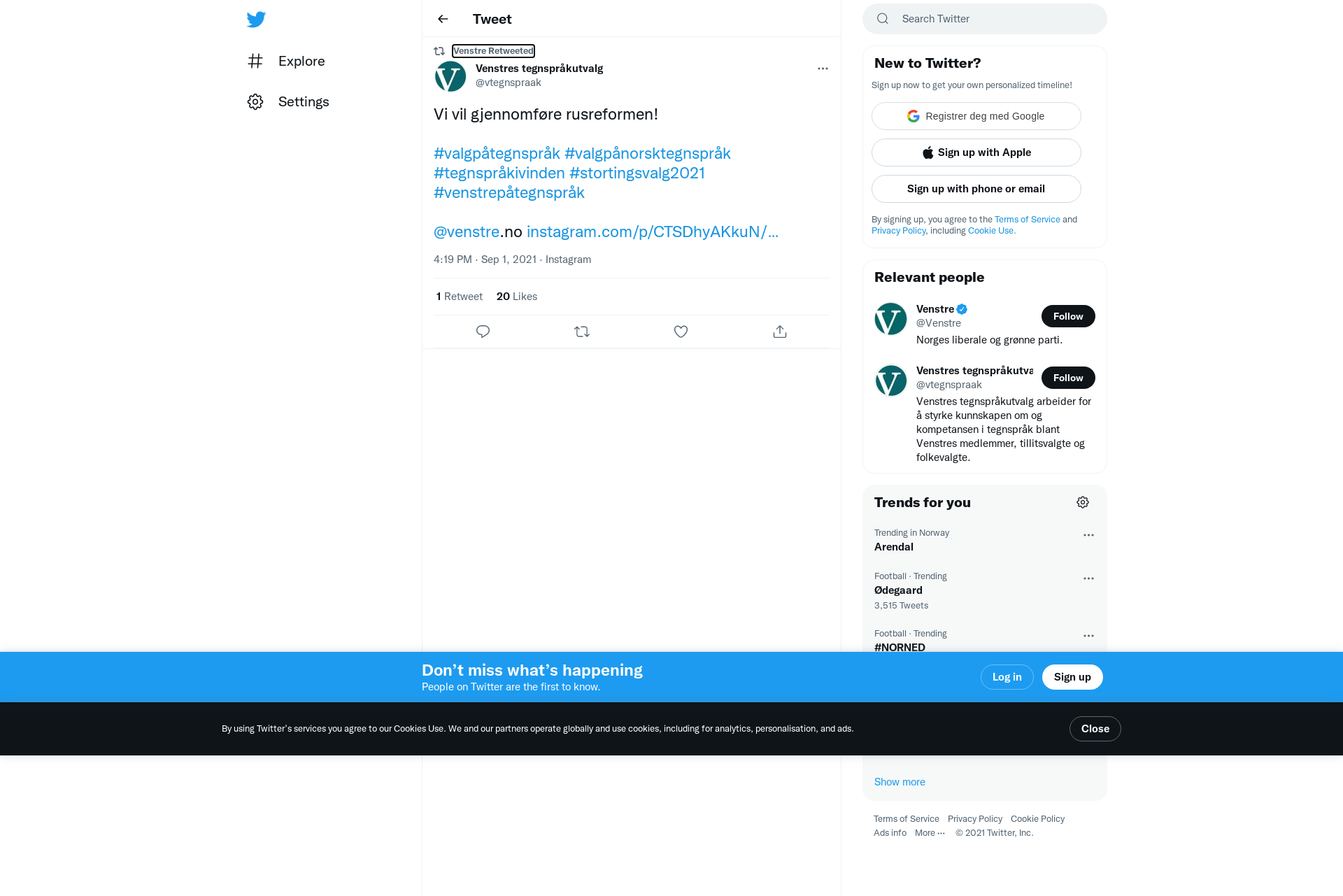 RT @vtegnspraak: Vi vil gjennomføre rusreformen! #valgpåtegnspråk #valgpånorsktegnspråk #tegnspråkivinden #stortingsvalg2021 #venstrepåteg…