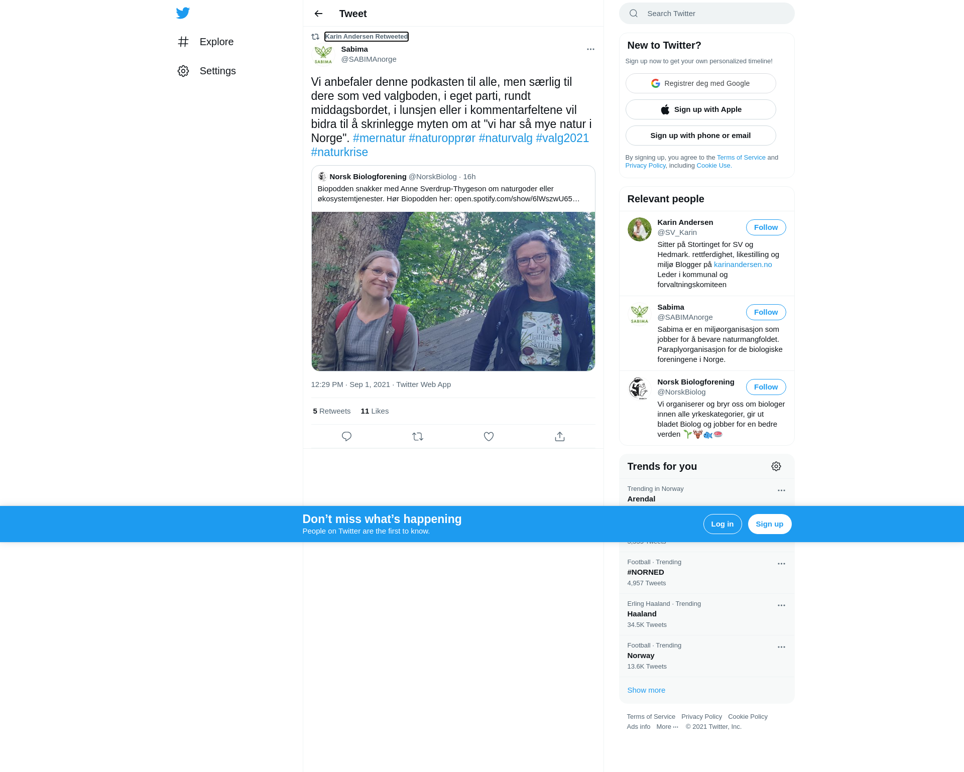RT @SABIMAnorge: Vi anbefaler denne podkasten til alle, men særlig til dere som ved valgboden, i eget parti, rundt middagsbordet, i lunsjen eller i kommentarfeltene vil bidra til å skrinlegge myten om at "vi har så mye natur i Norge". #mernatur #naturopprør #naturvalg #valg2021 #naturkrise