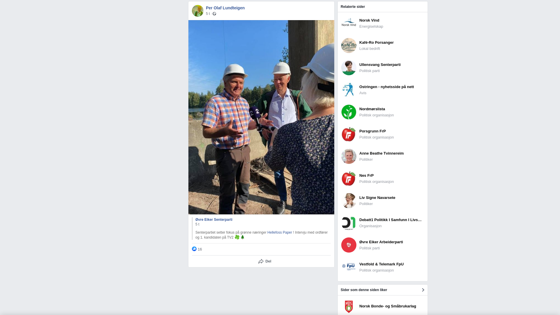 Senterpartiet setter fokus på grønne næringer Hellefoss Paper ! Intervju med ordfører og 1. kandidaten på TV2 🍀🌲