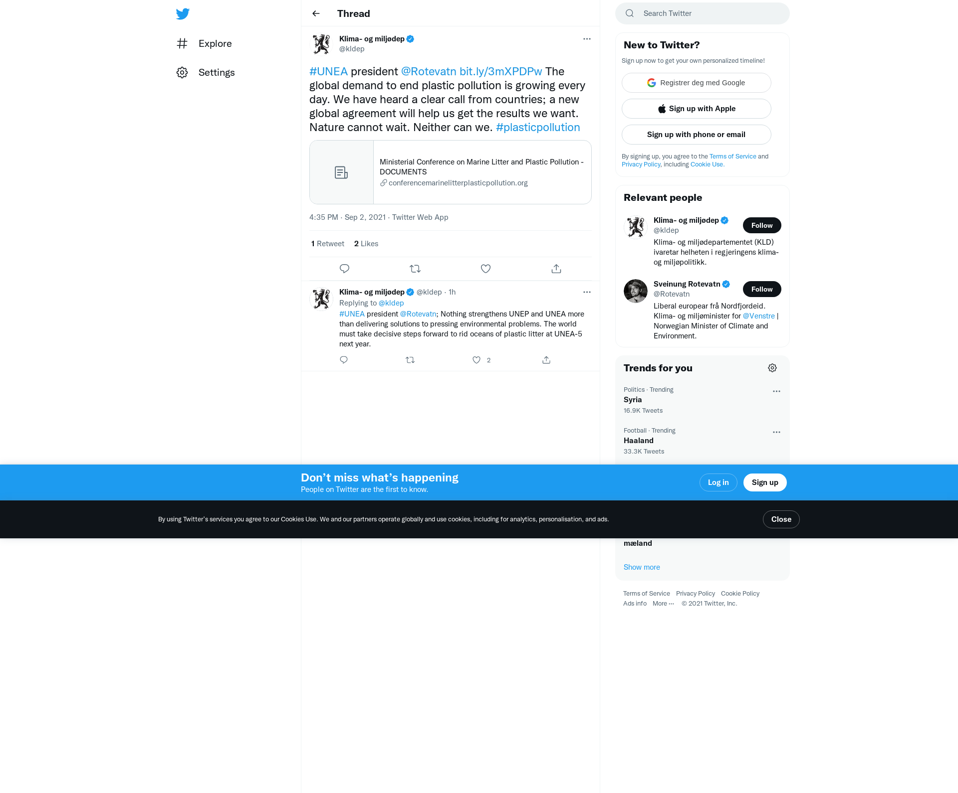 #UNEA president @Rotevatn https://t.co/OWGcWqMJYy The global demand to end plastic pollution is growing every day. We have heard a clear call from countries; a new global agreement will help us get the results we want. Nature cannot wait. Neither can we. #plasticpollution