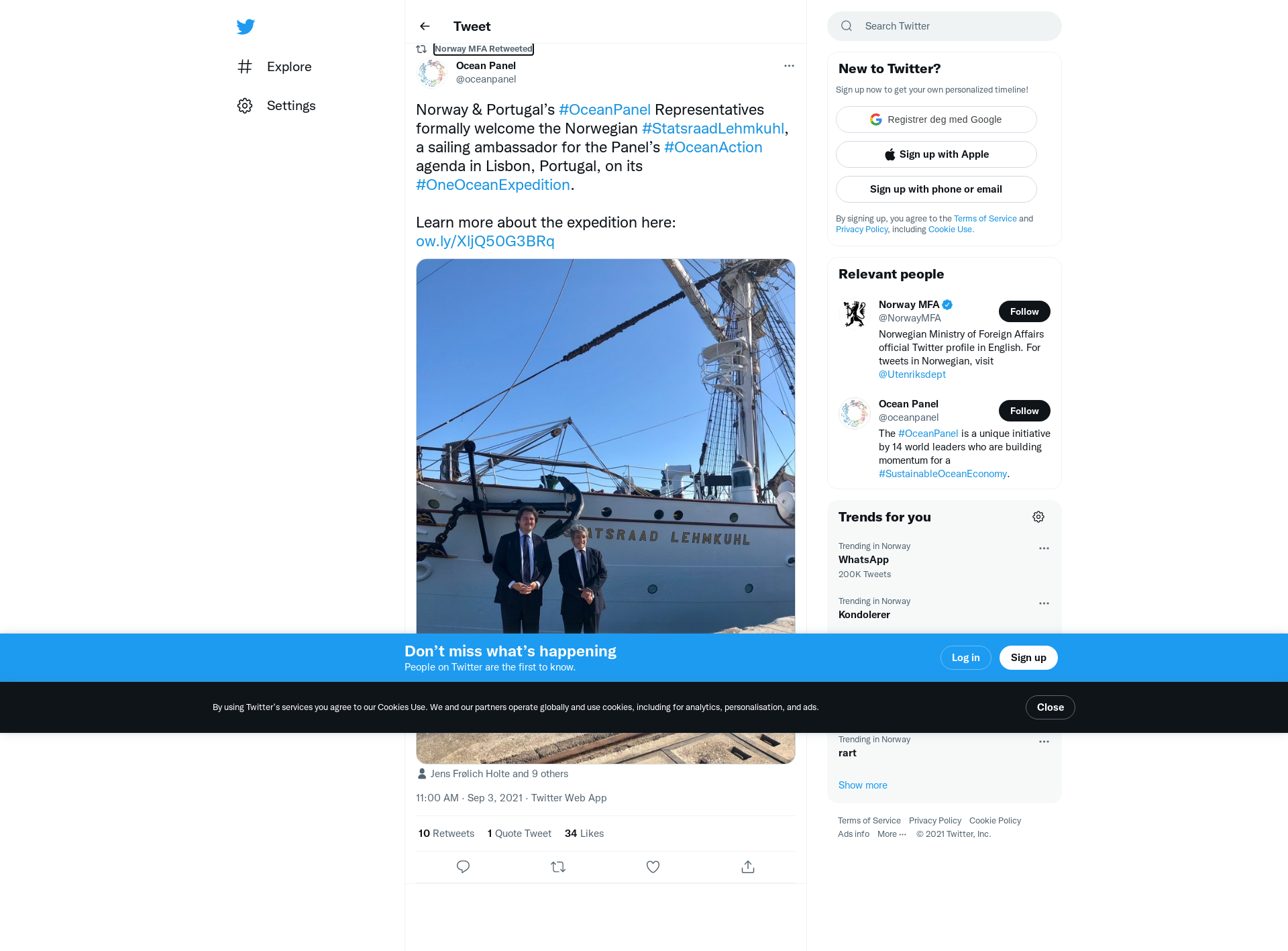RT @oceanpanel: Norway & Portugal’s #OceanPanel Representatives formally welcome the Norwegian #StatsraadLehmkuhl, a sailing ambassador for the Panel’s #OceanAction agenda in Lisbon, Portugal, on its #OneOceanExpedition.