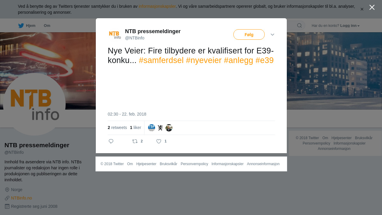 RT @NTBinfo: Nye Veier: Fire tilbydere er kvalifisert for E39-konku... #samferdsel #nyeveier #anlegg #e39 https://t.co/JxXzwmjIvU