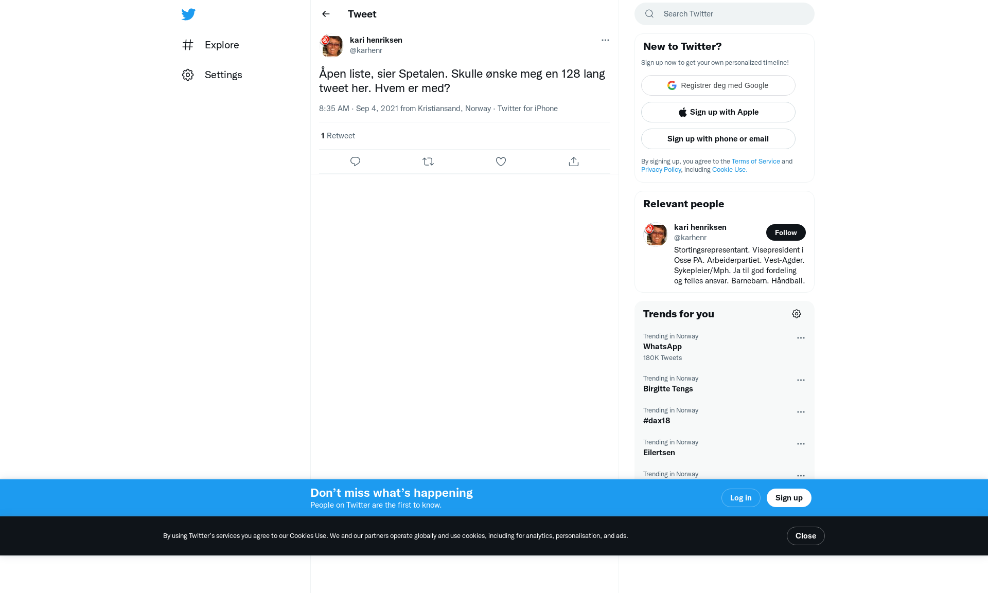 Åpen liste, sier Spetalen. Skulle ønske meg en 128 lang tweet her. Hvem er med?