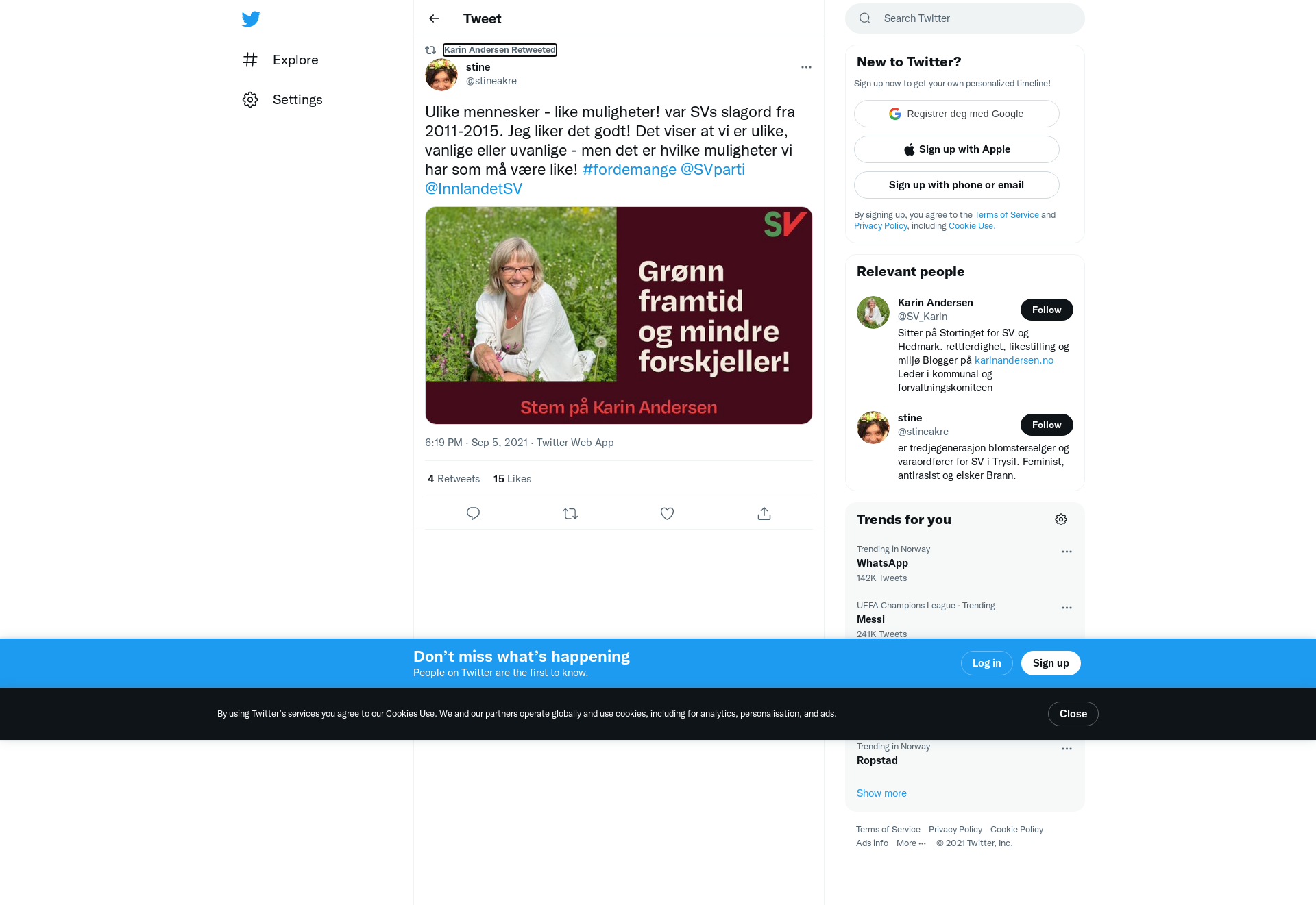 RT @stineakre: Ulike mennesker - like muligheter! var SVs slagord fra 2011-2015. Jeg liker det godt! Det viser at vi er ulike, vanlige eller uvanlige - men det er hvilke muligheter vi har som må være like! #fordemange @SVparti @InnlandetSV https://t.co/gly3BTvHgK