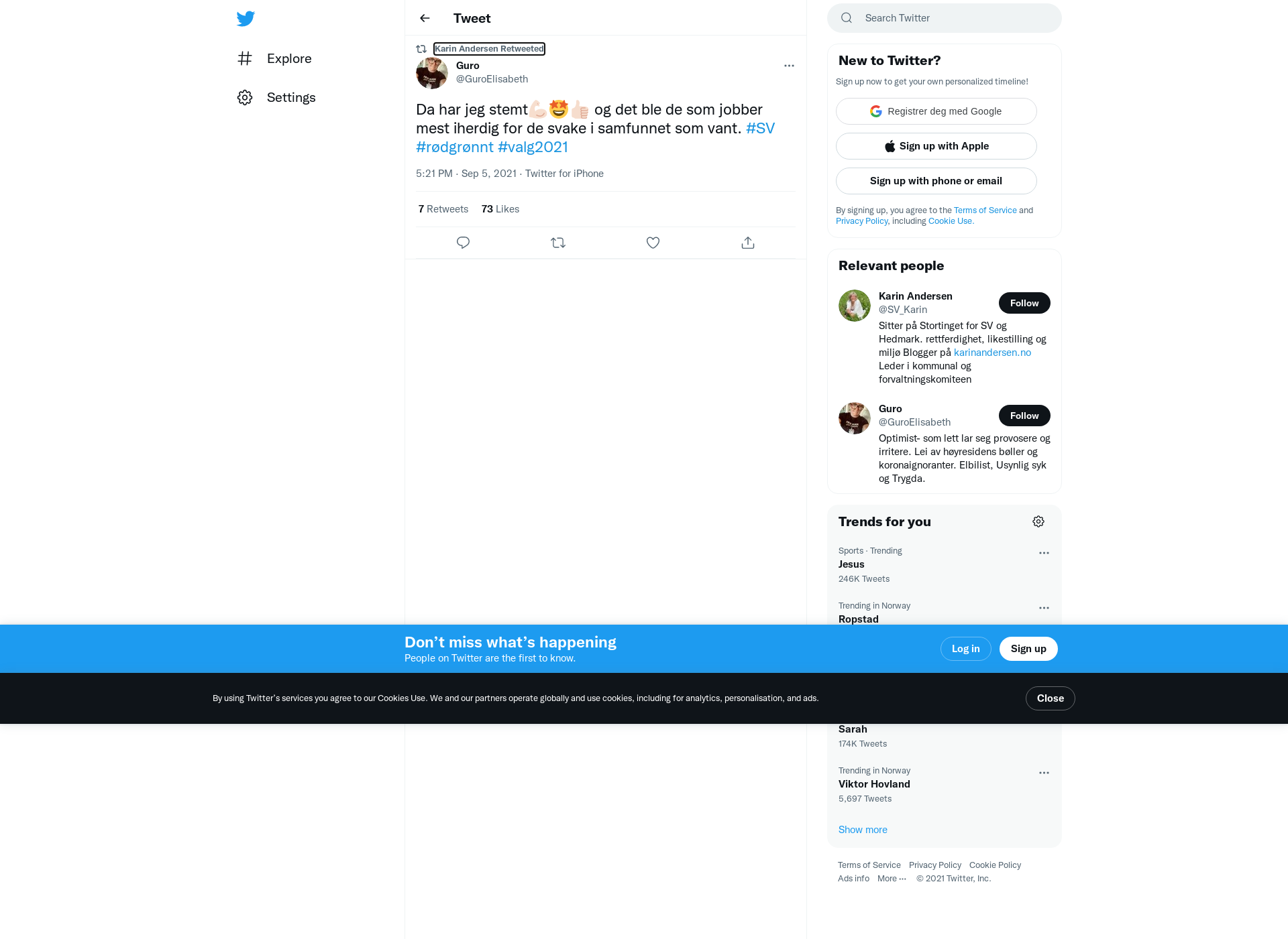 RT @GuroElisabeth: Da har jeg stemt💪🏻🤩👍🏻 og det ble de som jobber mest iherdig for de svake i samfunnet som vant. #SV #rødgrønnt #valg2021
