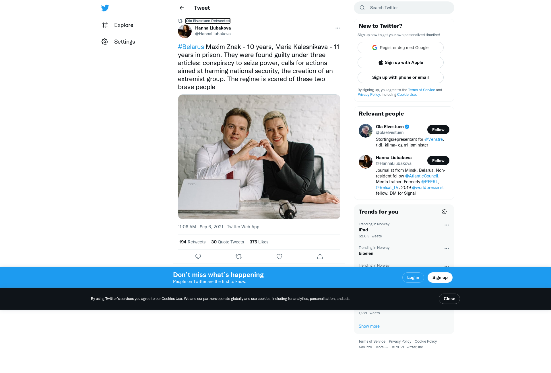 RT @HannaLiubakova: #Belarus Maxim Znak - 10 years, Maria Kalesnikava - 11 years in prison. They were found guilty under three articles: conspiracy to seize power, calls for actions aimed at harming national security, the creation of an extremist group. The regime is scared of these two brave people https://t.co/44O88Mb4MD