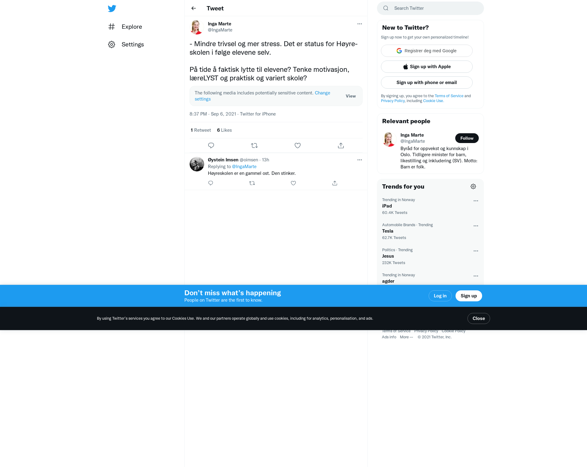 Mindre trivsel og mer stress: Dette er status for Høyre-skolen, ifølge elevene selv