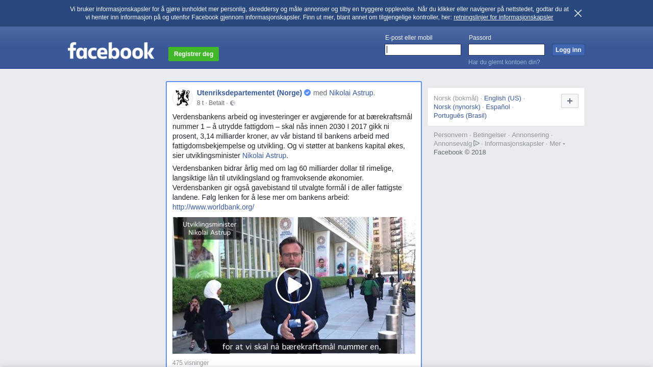 Verdensbankens arbeid og investeringer er avgjørende for at bærekraftsmål nummer 1 – å utrydde fattigdom – skal nås innen 2030  I 2017 gikk ni prosent, 3,14 milliarder kroner, av vår bistand til bankens arbeid med fattigdomsbekjempelse og utvikling. Og vi støtter at bankens kapital økes, sier utviklingsminister Nikolai Astrup.