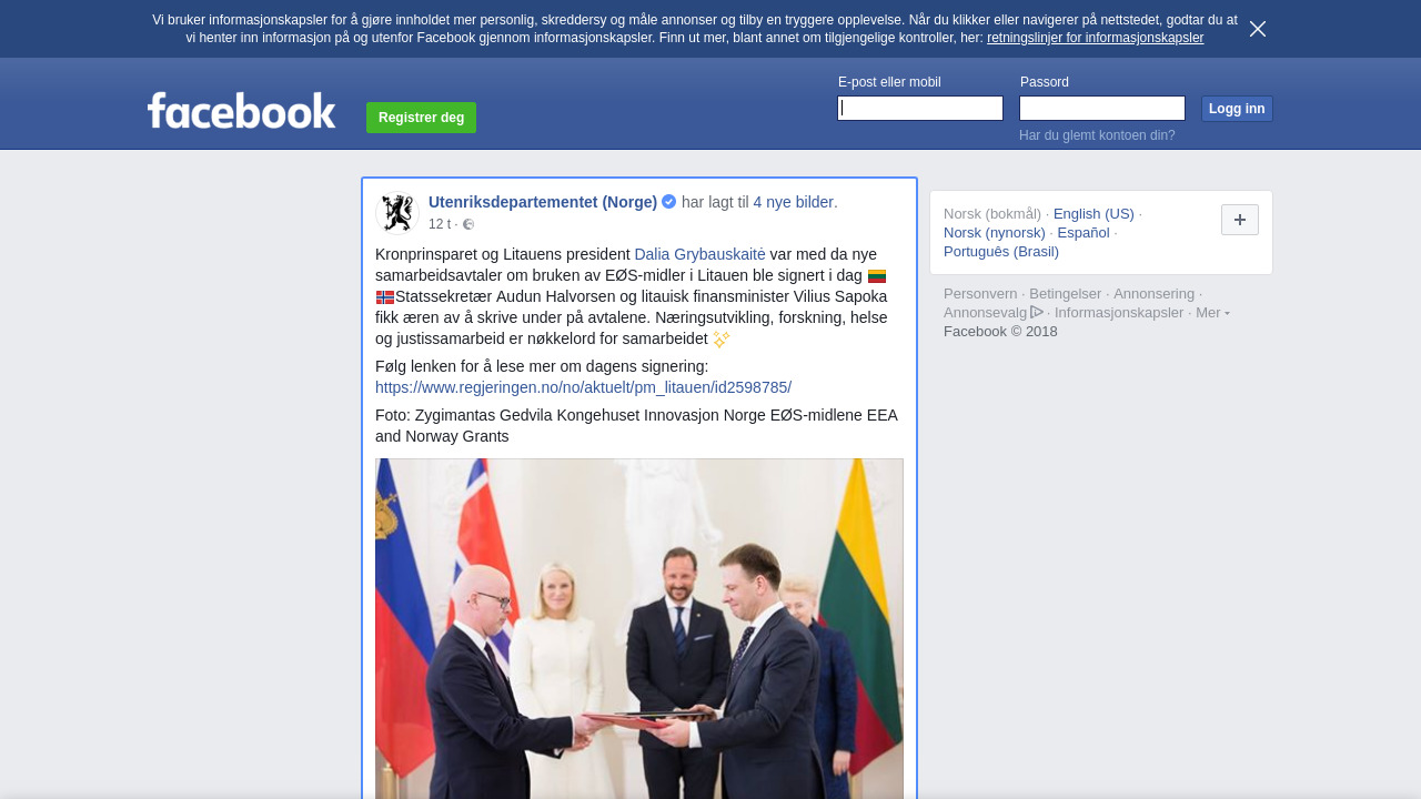 Kronprinsparet og Litauens president Dalia Grybauskaitė var med da nye samarbeidsavtaler om bruken av EØS-midler i Litauen ble signert i dag 🇱🇹🇳🇴Statssekretær Audun Halvorsen og litauisk finansminister Vilius Sapoka fikk æren av å skrive under på avtalene. Næringsutvikling, forskning, helse og justissamarbeid er nøkkelord for samarbeidet ✨
