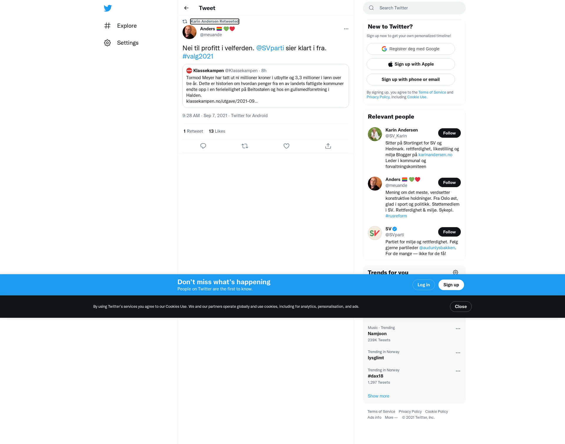 RT @meuande: Nei til profitt i velferden. @SVparti sier klart i fra. #valg2021