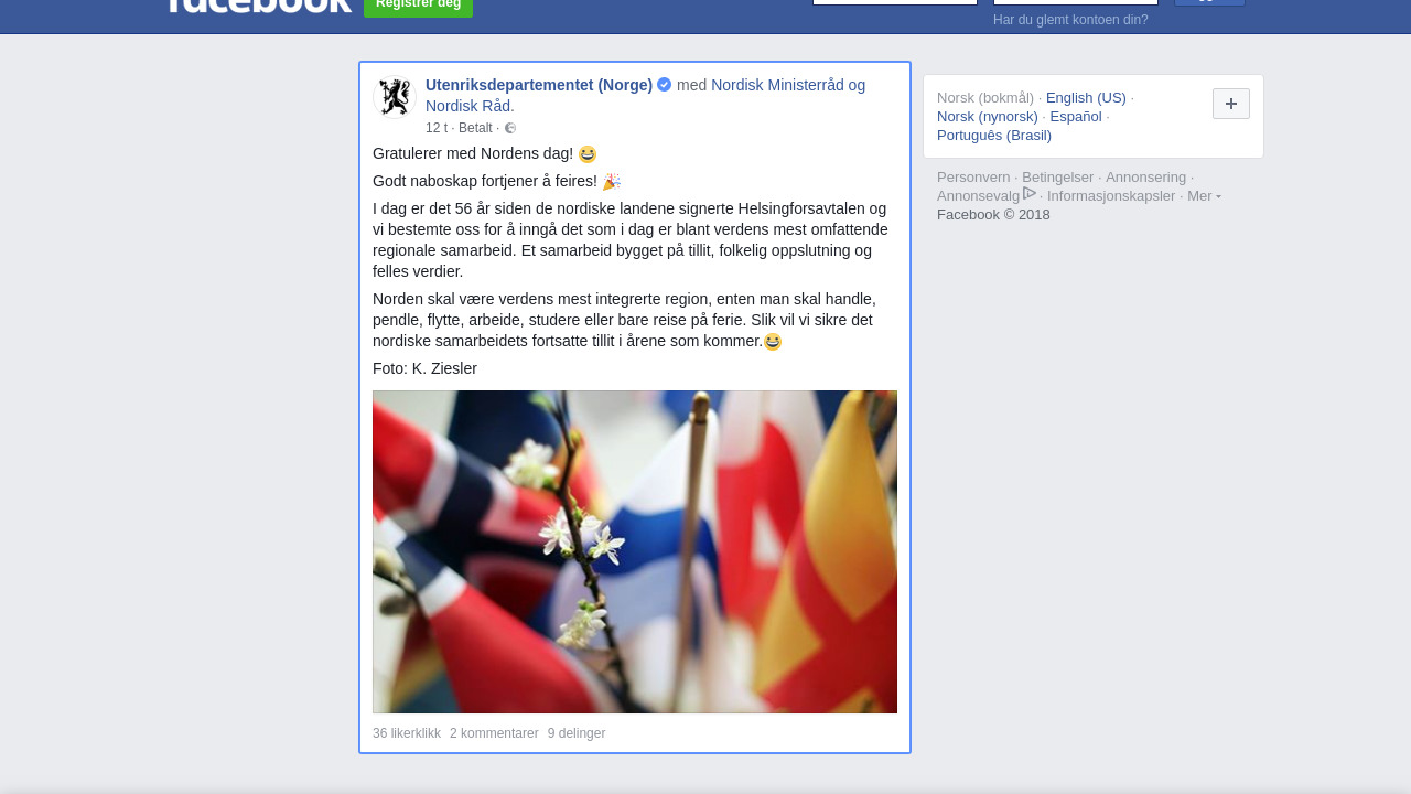 I dag er det 56 år siden de nordiske landene signerte Helsingforsavtalen og vi bestemte oss for å inngå det som i dag er blant verdens mest omfattende regionale samarbeid. Et samarbeid bygget på tillit, folkelig oppslutning og felles verdier.