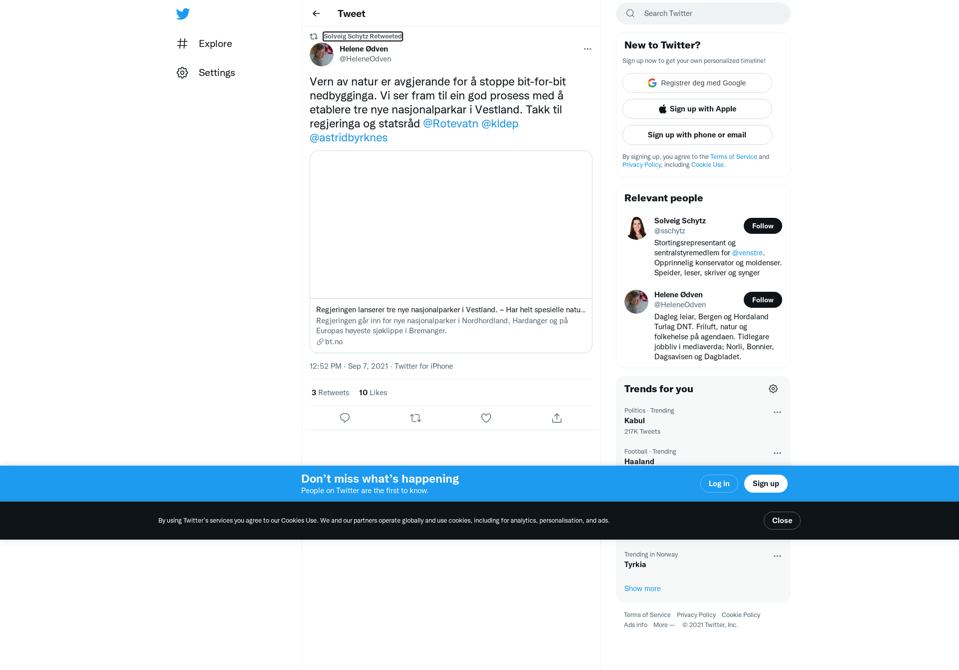 RT @HeleneOdven: Vern av natur er avgjerande for å stoppe bit-for-bit nedbygginga. Vi ser fram til ein god prosess med å etablere tre nye nasjonalparkar i Vestland. Takk til regjeringa og statsråd @Rotevatn @kldep @astridbyrknes https://t.co/mhp2kEsPGm