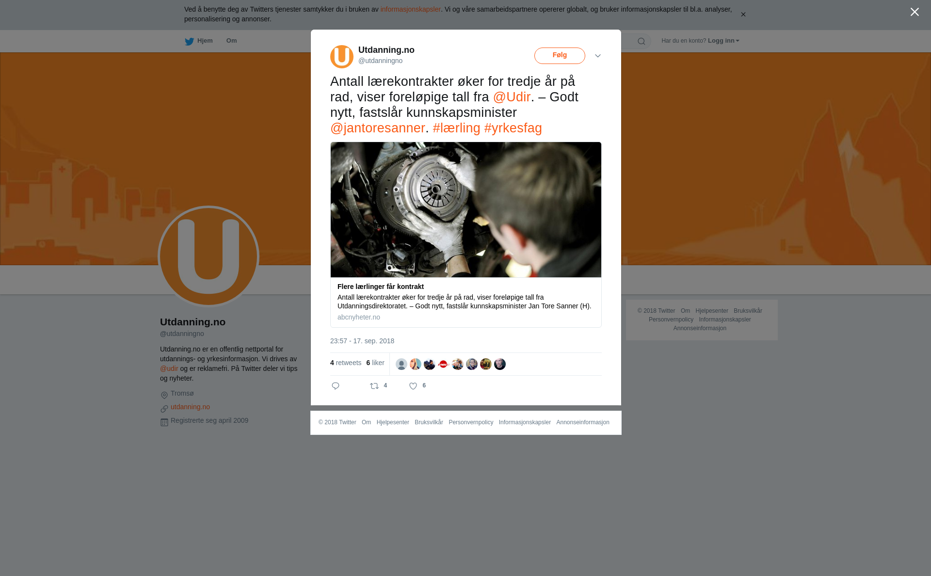 RT @utdanningno: Antall lærekontrakter øker for tredje år på rad, viser foreløpige tall fra @Udir. – Godt nytt, fastslår kunnskapsminister @jantoresanner. #lærling #yrkesfag https://t.co/doCv4v0oJW