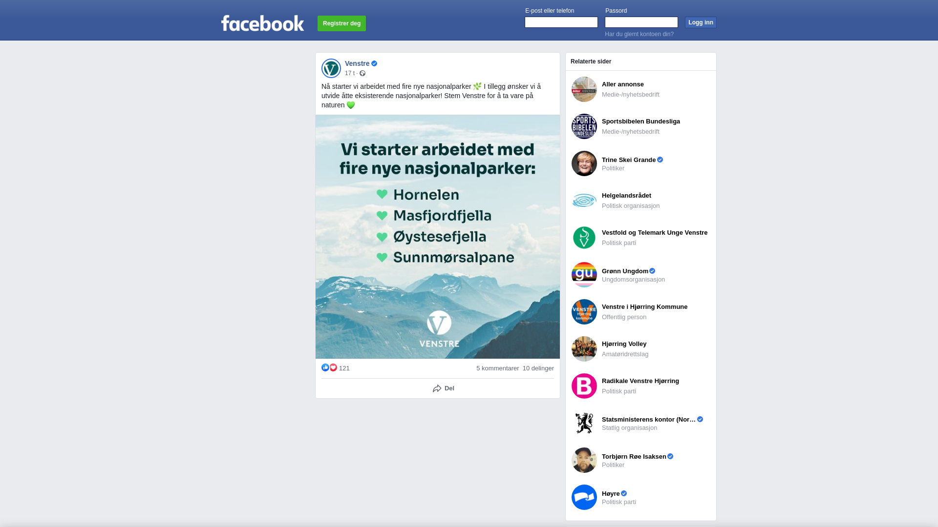 Nå starter vi arbeidet med fire nye nasjonalparker 🌿 I tillegg ønsker vi å utvide åtte eksisterende nasjonalparker! Stem Venstre for å ta vare på naturen 💚