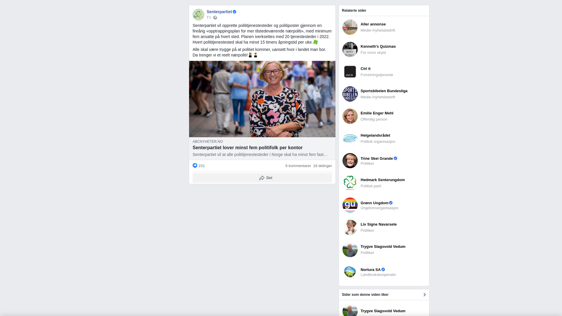 Senterpartiet vil opprette polititjenestesteder og politiposter gjennom en fireårig «opptrappingsplan for mer tilstedeværende nærpoliti», med minimum fem ansatte på hvert sted. Planen iverksettes med 20 tjenestesteder i 2022. Hvert polititjenestested skal ha minst 15 timers åpningstid per uke.🍀