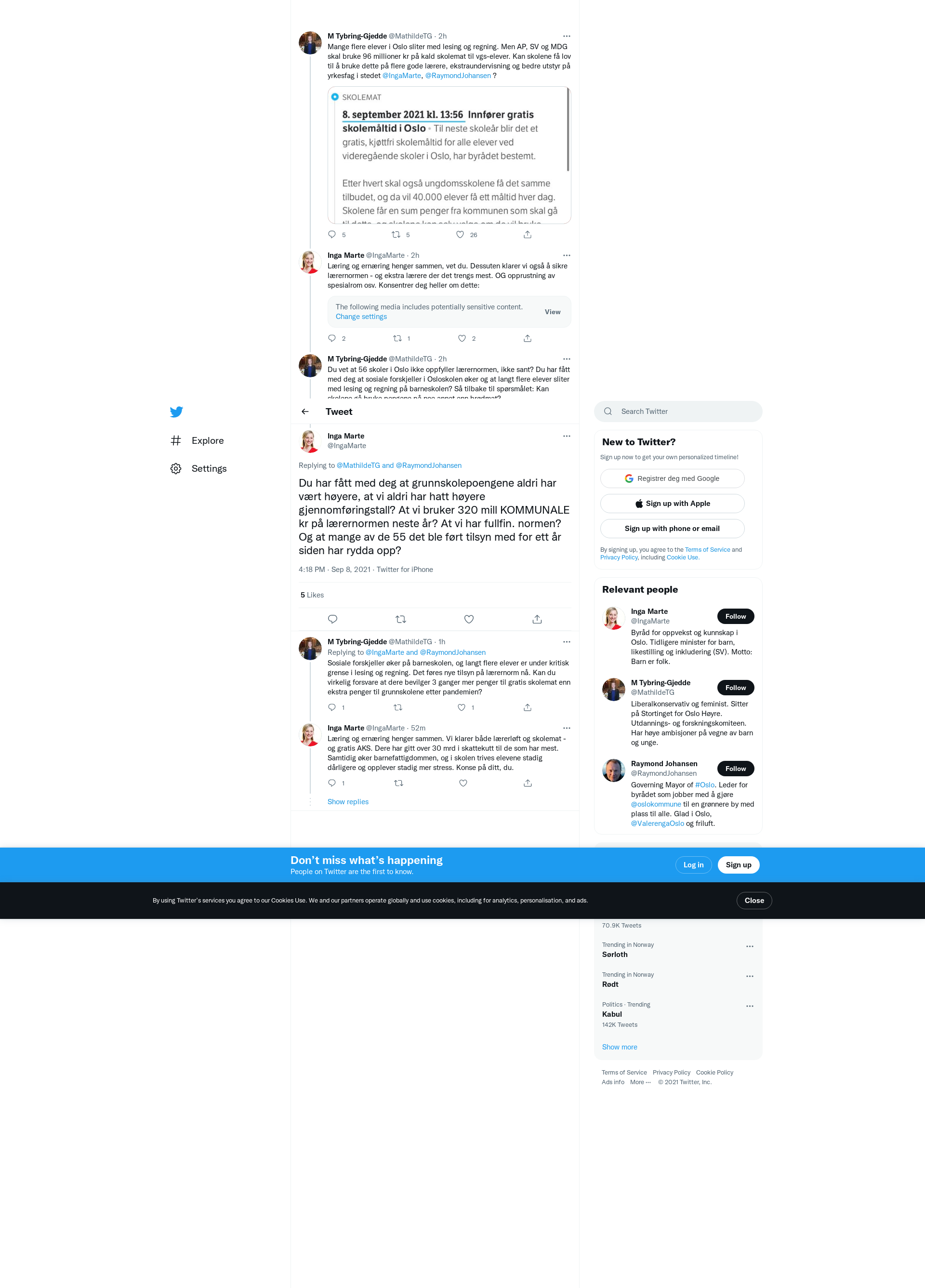 @MathildeTG @RaymondJohansen Du har fått med deg at grunnskolepoengene aldri har vært høyere, at vi aldri har hatt høyere gjennomføringstall? At vi bruker 320 mill KOMMUNALE kr på lærernormen neste år? At vi har fullfin. normen? Og at mange av de 55 det ble ført tilsyn med for ett år siden har rydda opp?