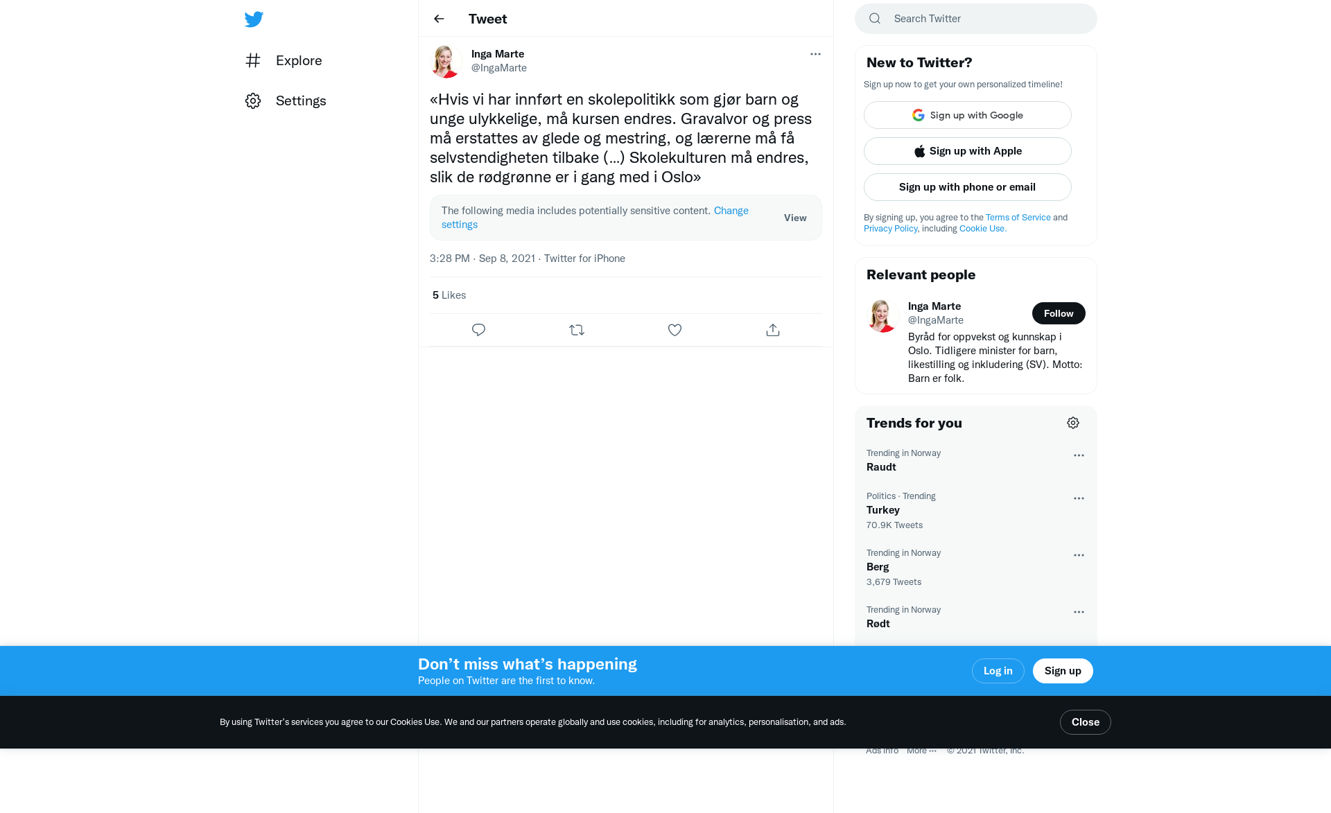 «Hvis vi har innført en skolepolitikk som gjør barn og unge ulykkelige, må kursen endres. Gravalvor og press må erstattes av glede og mestring, og lærerne må få selvstendigheten tilbake (…) Skolekulturen må endres, slik de rødgrønne er i gang med i Oslo» https://t.co/2xpR5AdNiN