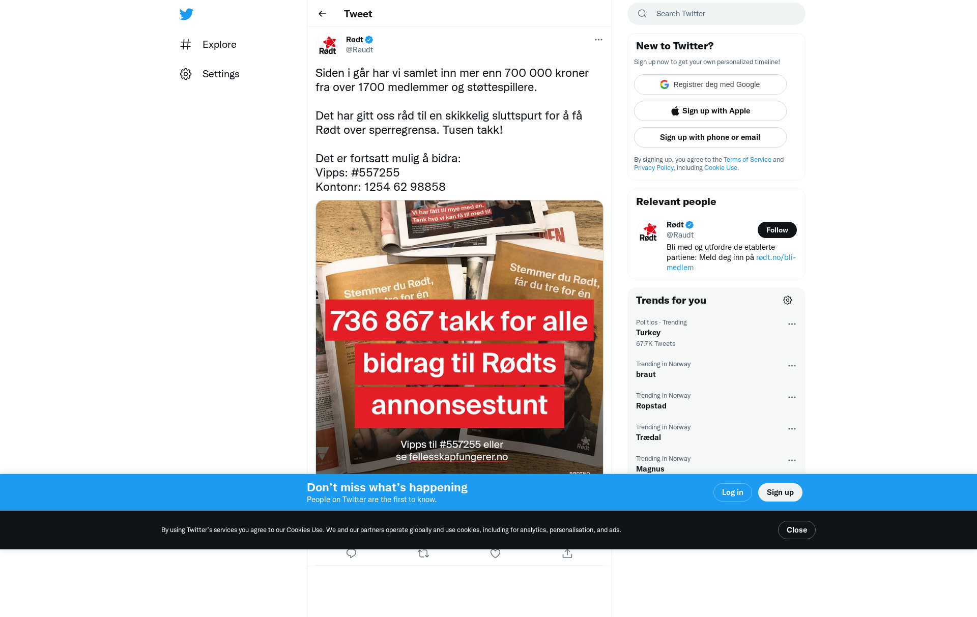 Det har gitt oss råd til en skikkelig sluttspurt for å få Rødt over sperregrensa. Tusen takk!