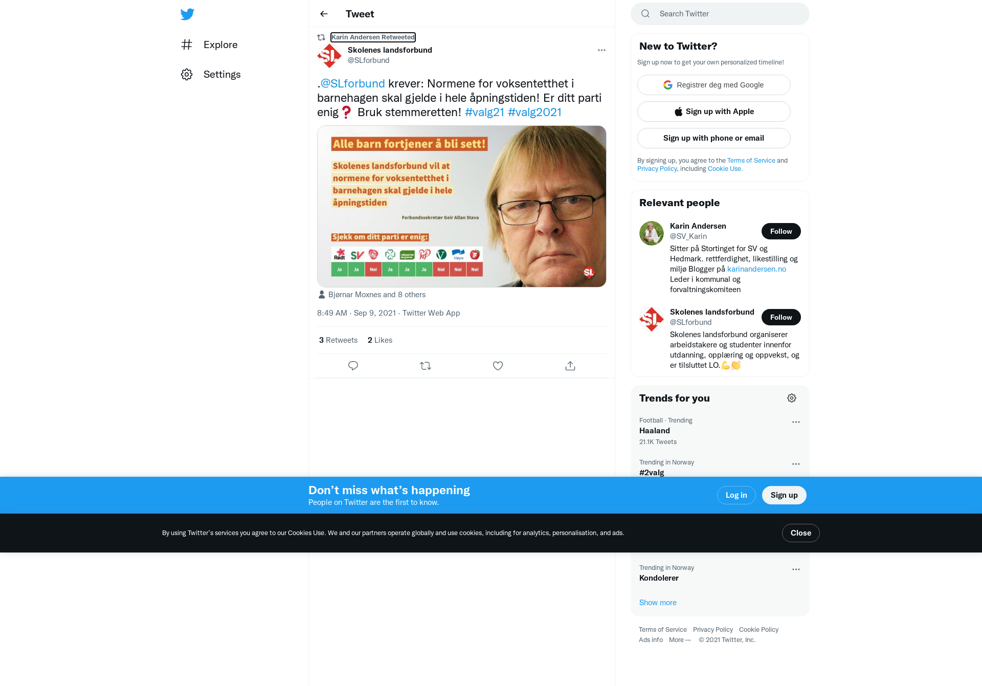 RT @SLforbund: .@SLforbund krever: Normene for voksentetthet i barnehagen skal gjelde i hele åpningstiden! Er ditt parti enig❓ Bruk stemmeretten! #valg21 #valg2021 https://t.co/XUVEFLTpH5