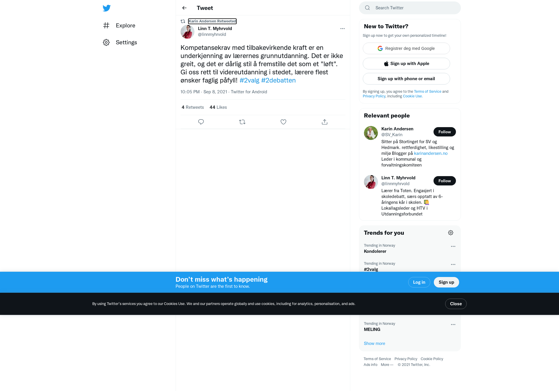 RT @linnmyhrvold: Kompetansekrav med tilbakevirkende kraft er en underkjenning av lærernes grunnutdanning. Det er ikke greit, og det er dårlig stil å fremstille det som et "løft". Gi oss rett til videreutdanning i stedet, lærere flest ønsker faglig påfyll! #2valg #2debatten
