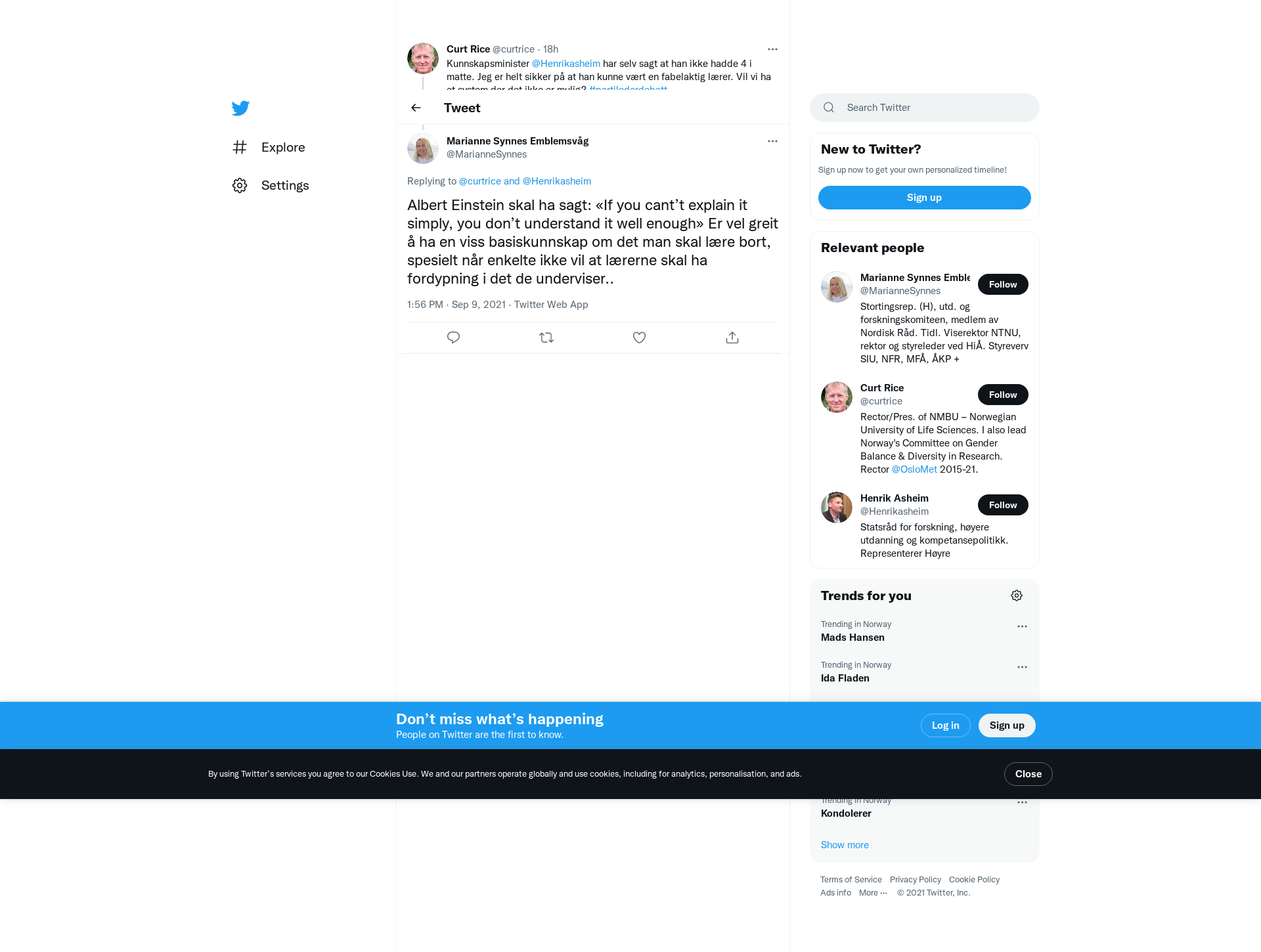 @curtrice @Henrikasheim Albert Einstein skal ha sagt: «If you cant’t explain it simply, you don’t understand it well enough» Er vel greit å ha en viss basiskunnskap om det man skal lære bort, spesielt når enkelte ikke vil at lærerne skal ha fordypning i det de underviser..