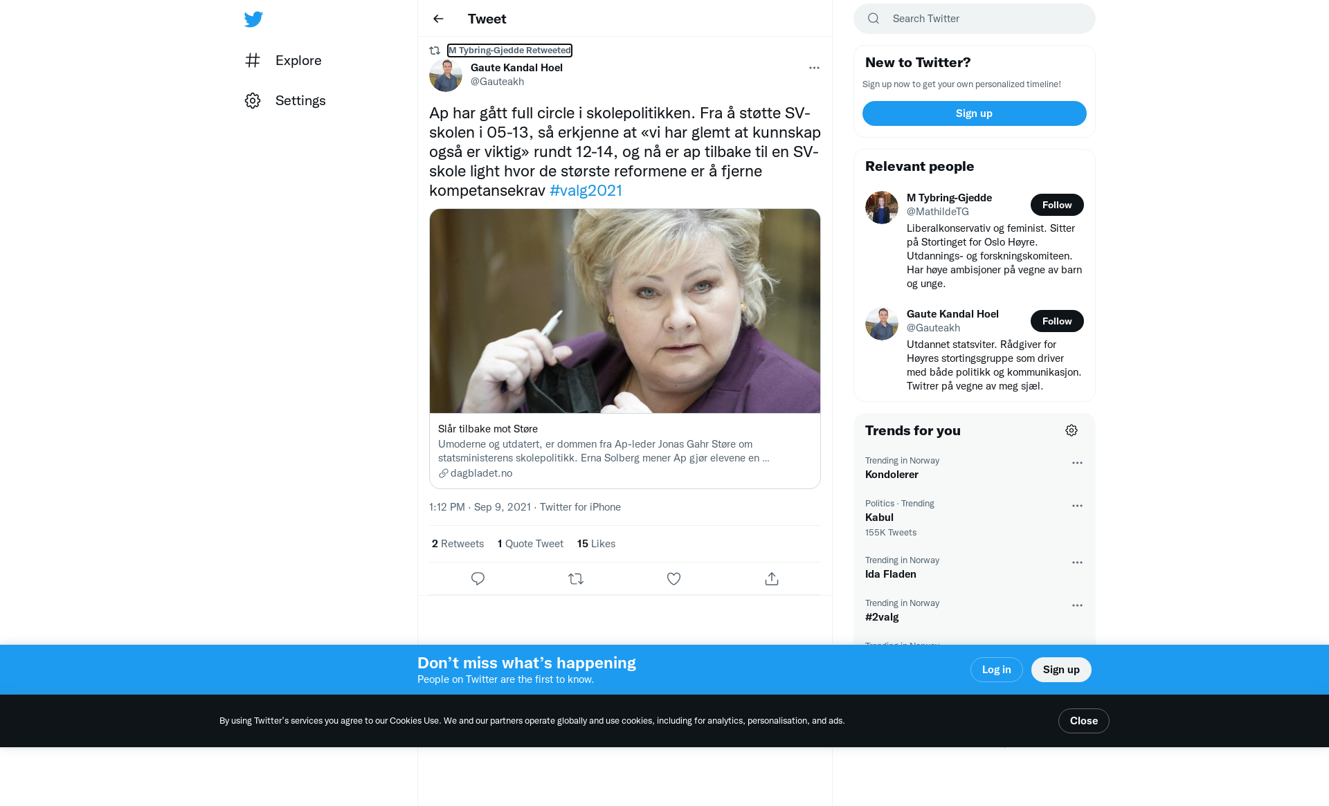 RT @Gauteakh: Ap har gått full circle i skolepolitikken. Fra å støtte SV-skolen i 05-13, så erkjenne at «vi har glemt at kunnskap også er viktig» rundt 12-14, og nå er ap tilbake til en SV-skole light hvor de største reformene er å fjerne kompetansekrav #valg2021 https://t.co/4T3SskbUiZ