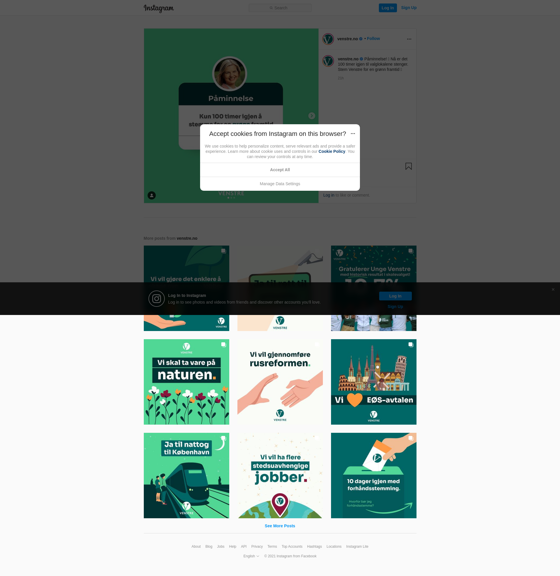 Påminnelse! 🗳 Nå er det 100 timer igjen til valglokalene stenger. Stem Venstre for en grønn framtid 💚
