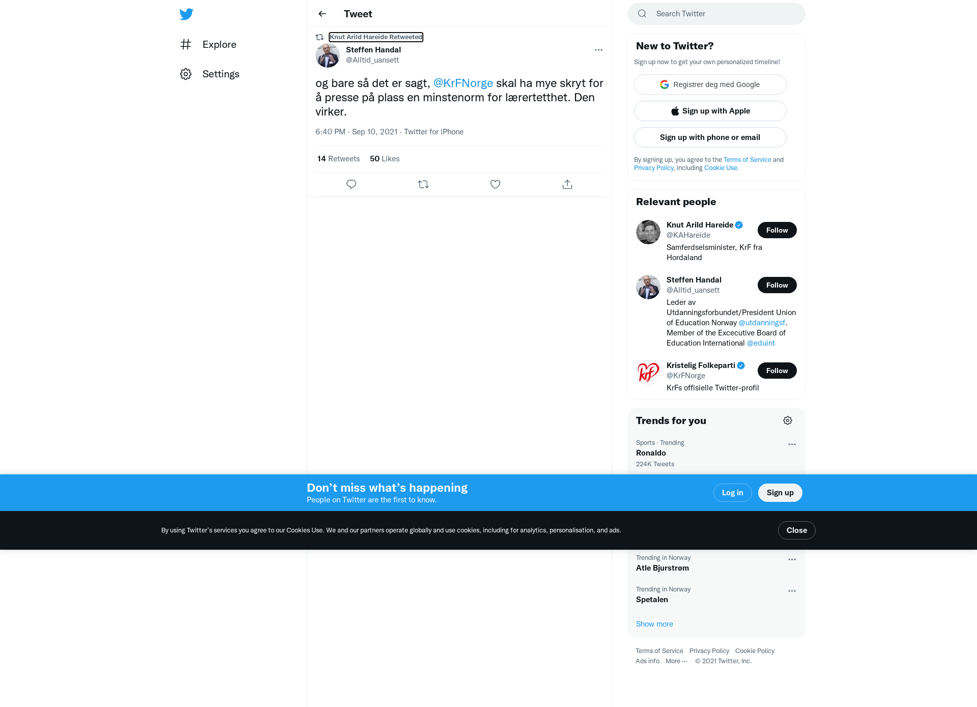 RT @Alltid_uansett: og bare så det er sagt, @KrFNorge skal ha mye skryt for å presse på plass en minstenorm for lærertetthet. Den virker.