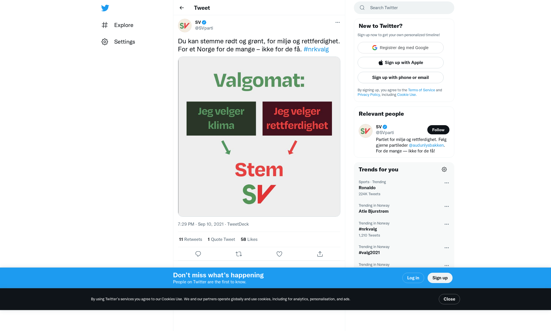 Du kan stemme rødt og grønt, for miljø og rettferdighet. For et Norge for de mange – ikke for de få. #nrkvalg https://t.co/a2l6qLPnuQ