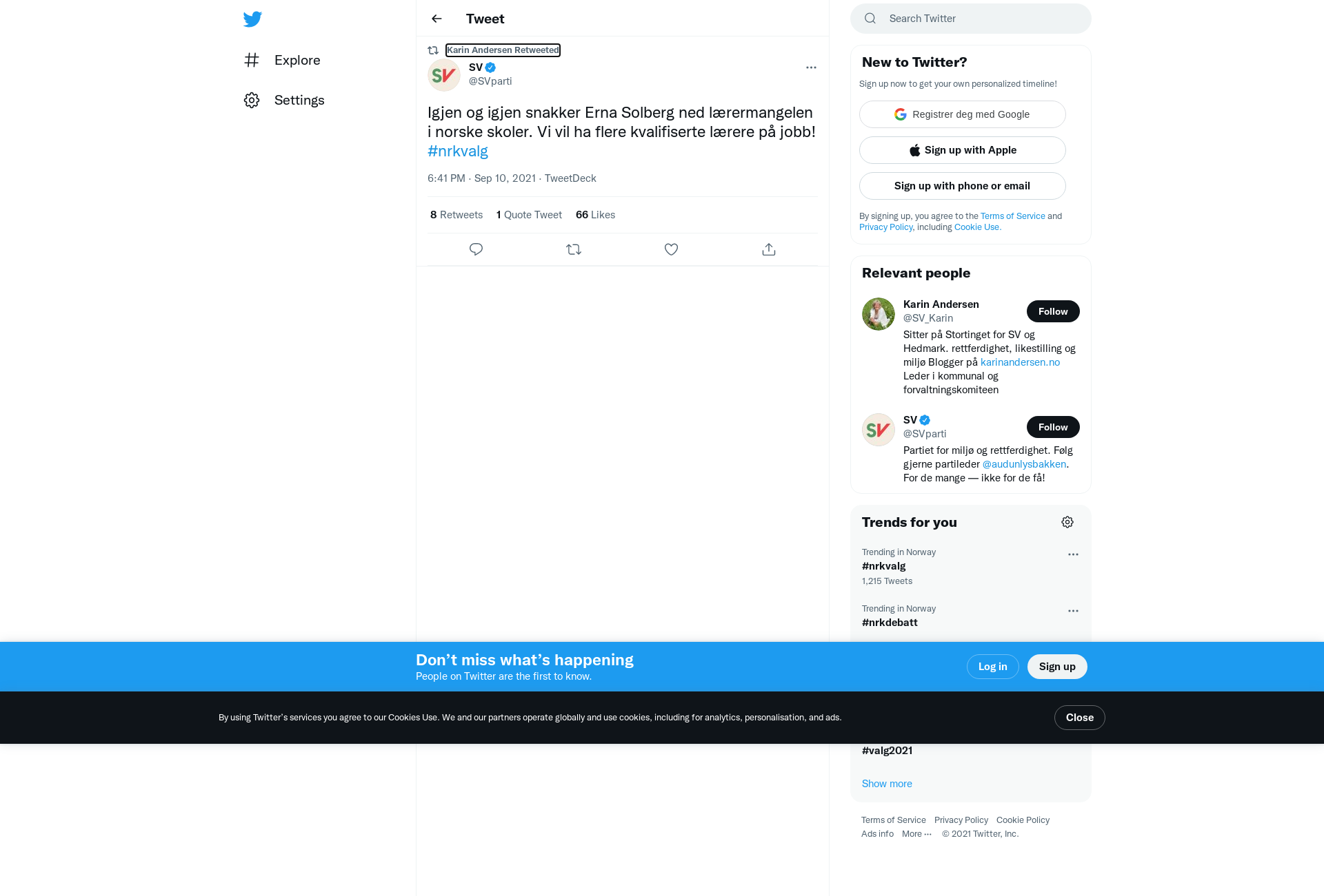 RT @SVparti: Igjen og igjen snakker Erna Solberg ned lærermangelen i norske skoler. Vi vil ha flere kvalifiserte lærere på jobb! #nrkvalg
