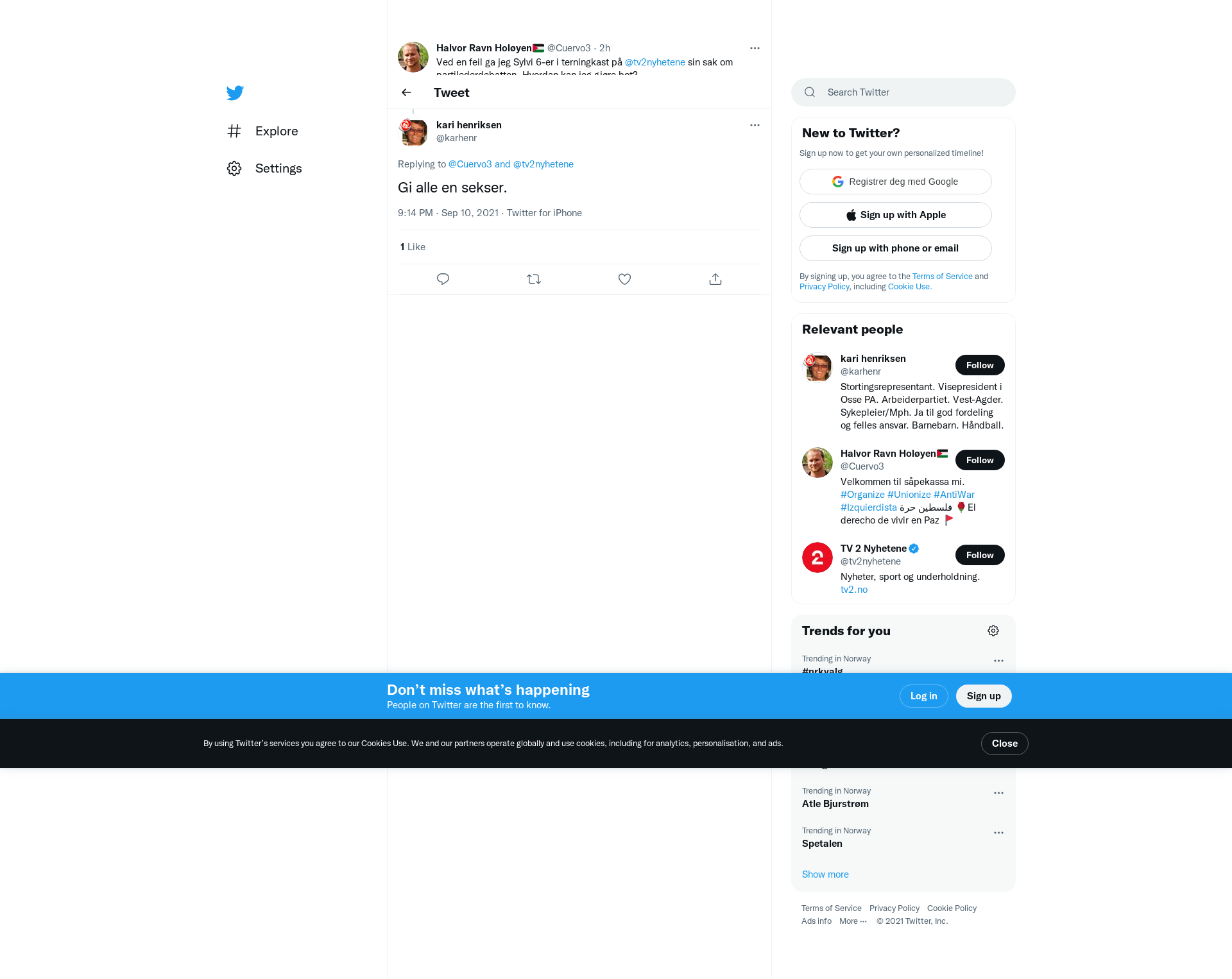 @Cuervo3 @tv2nyhetene Gi alle en sekser.