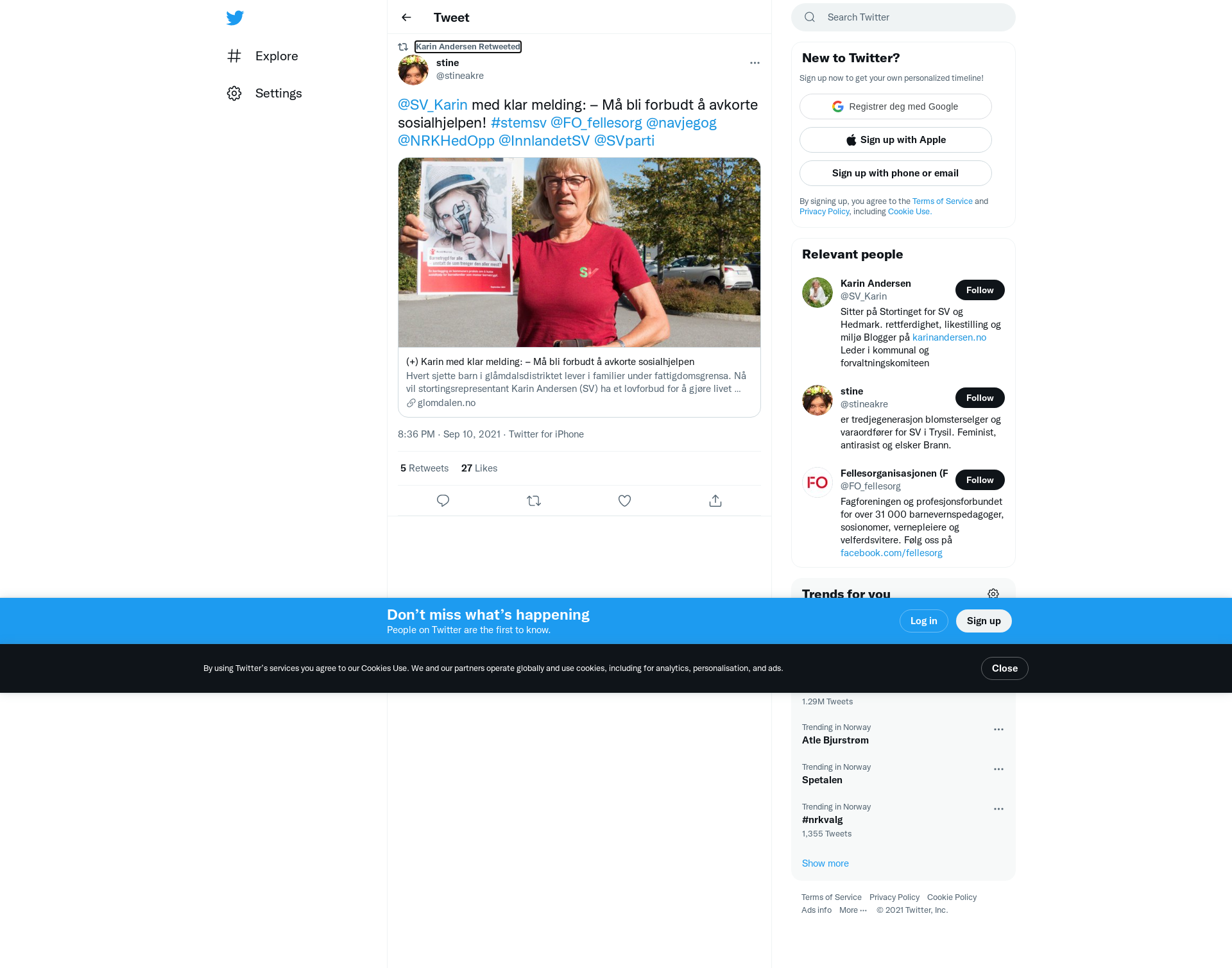RT @stineakre: @SV_Karin med klar melding: – Må bli forbudt å avkorte sosialhjelpen! #stemsv @FO_fellesorg @navjegog @NRKHedOpp @InnlandetSV @SVparti https://t.co/NUQDv54byS