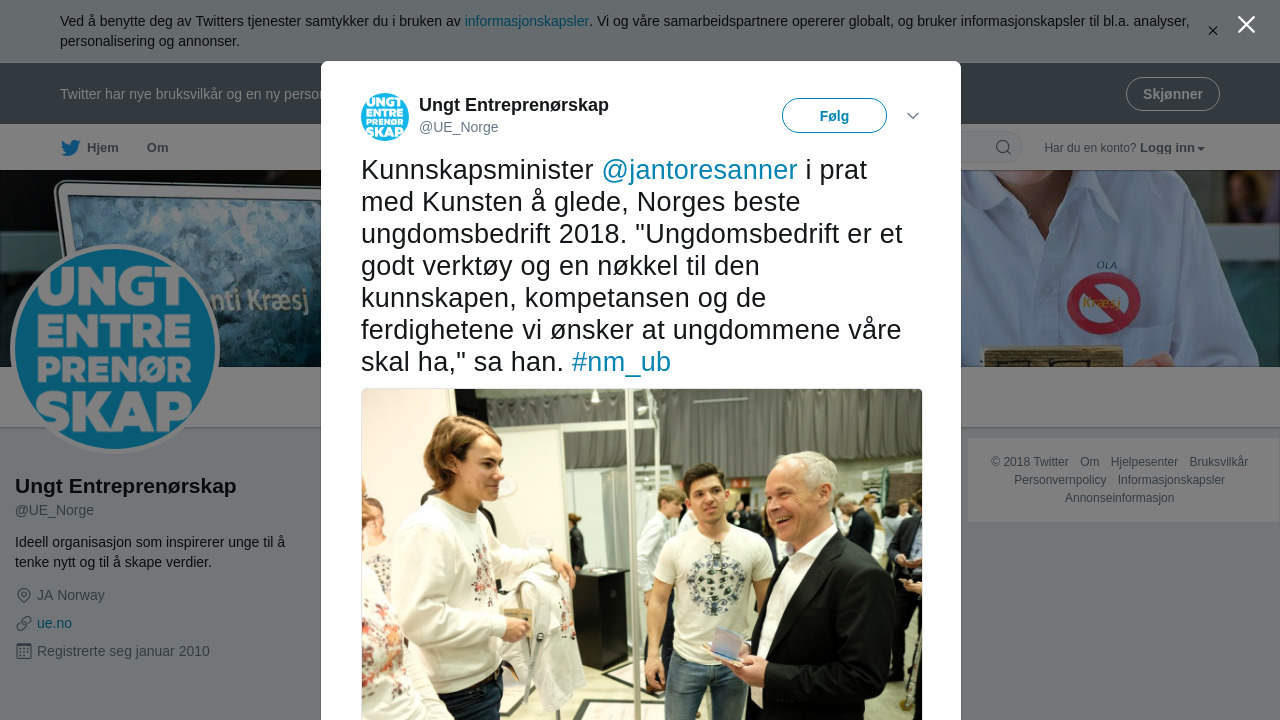 RT @UE_Norge: Kunnskapsminister @jantoresanner i prat med Kunsten å glede, Norges beste ungdomsbedrift 2018. "Ungdomsbedrift er e… https://t.co/3dxMpwpbA7