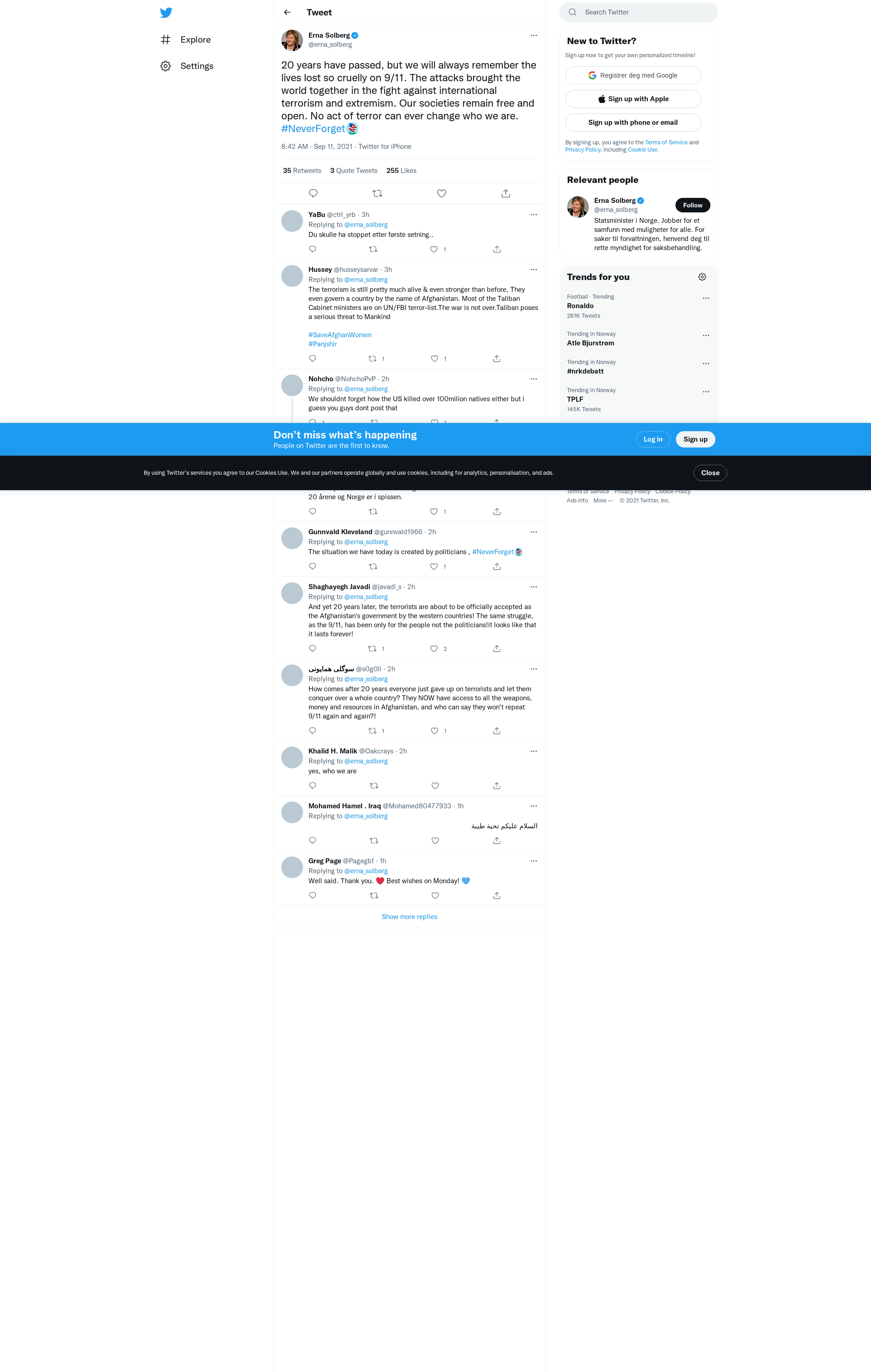 20 years have passed, but we will always remember the lives lost so cruelly on 9/11. The attacks brought the world together in the fight against international terrorism and extremism. Our societies remain free and open. No act of terror can ever change who we are. #NeverForget
