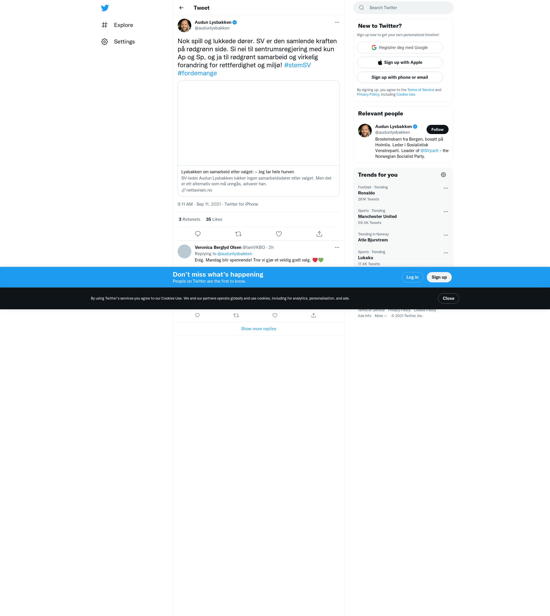 Nok spill og lukkede dører. SV er den samlende kraften på rødgrønn side. Si nei til sentrumsregjering med kun Ap og Sp, og ja til rødgrønt samarbeid og virkelig forandring for rettferdighet og miljø! #stemSV #fordemange https://t.co/rg500cWVDz