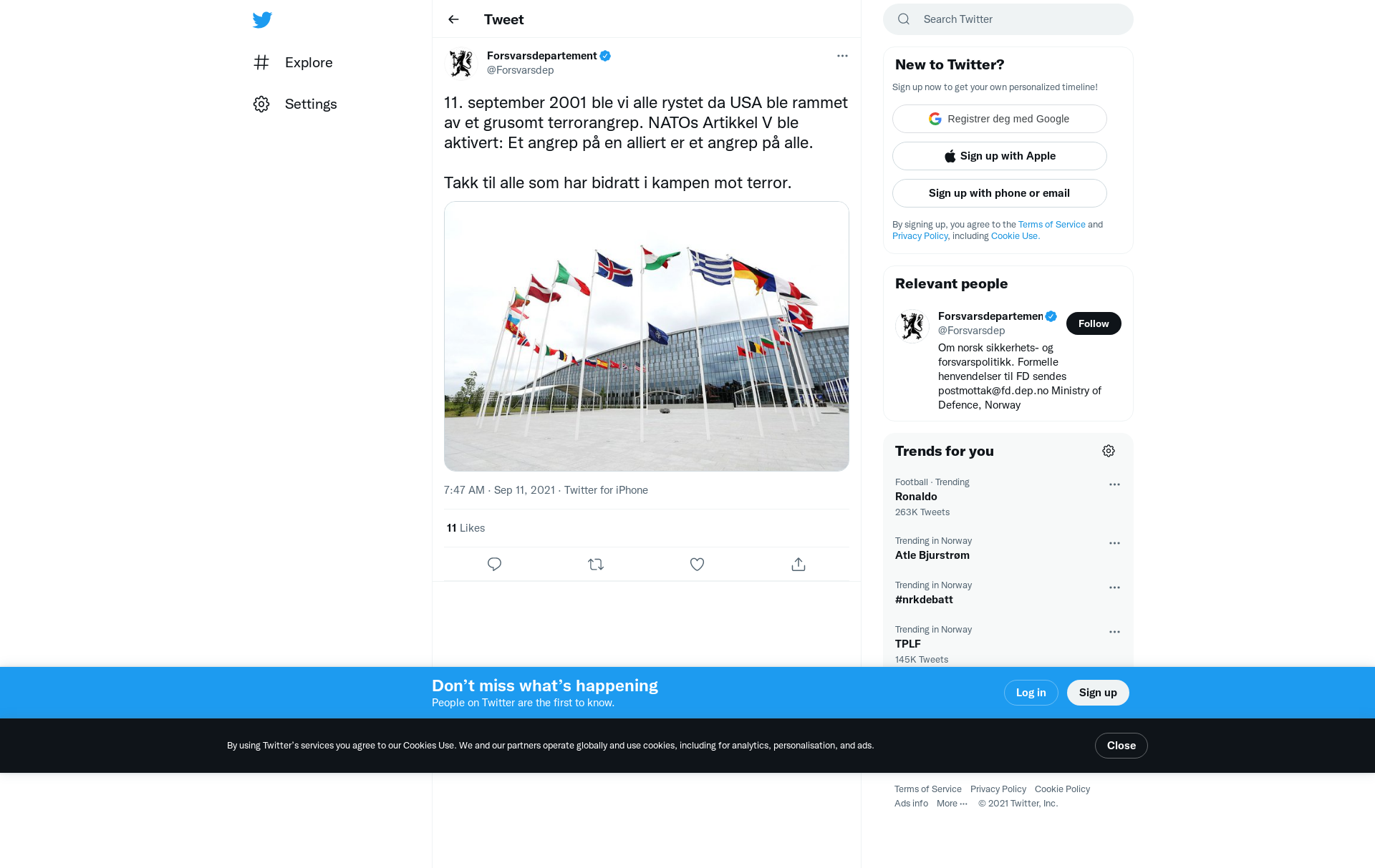 11. september 2001 ble vi alle rystet da USA ble rammet av et grusomt terrorangrep. NATOs Artikkel V ble aktivert: Et angrep på en alliert er et angrep på alle.