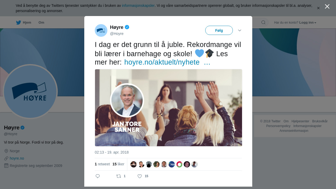 RT @Hoyre: I dag er det grunn til å juble. Rekordmange vil bli lærer i barnehage og skole! 💙🎓 Les mer her:… https://t.co/47PihALQzU