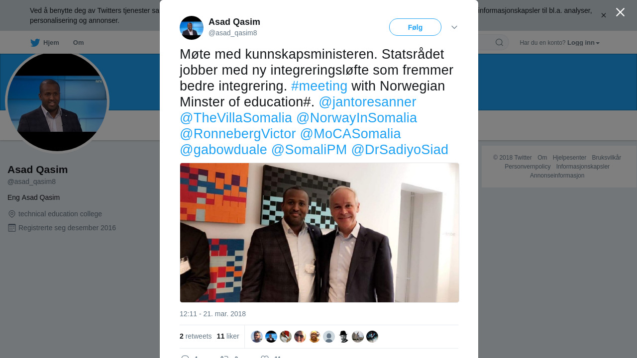 RT @asad_qasim8: Møte med kunnskapsministeren. Statsrådet jobber med ny integreringsløfte som fremmer bedre integrering. #meeting wi… https://t.co/yySJbLR7b6