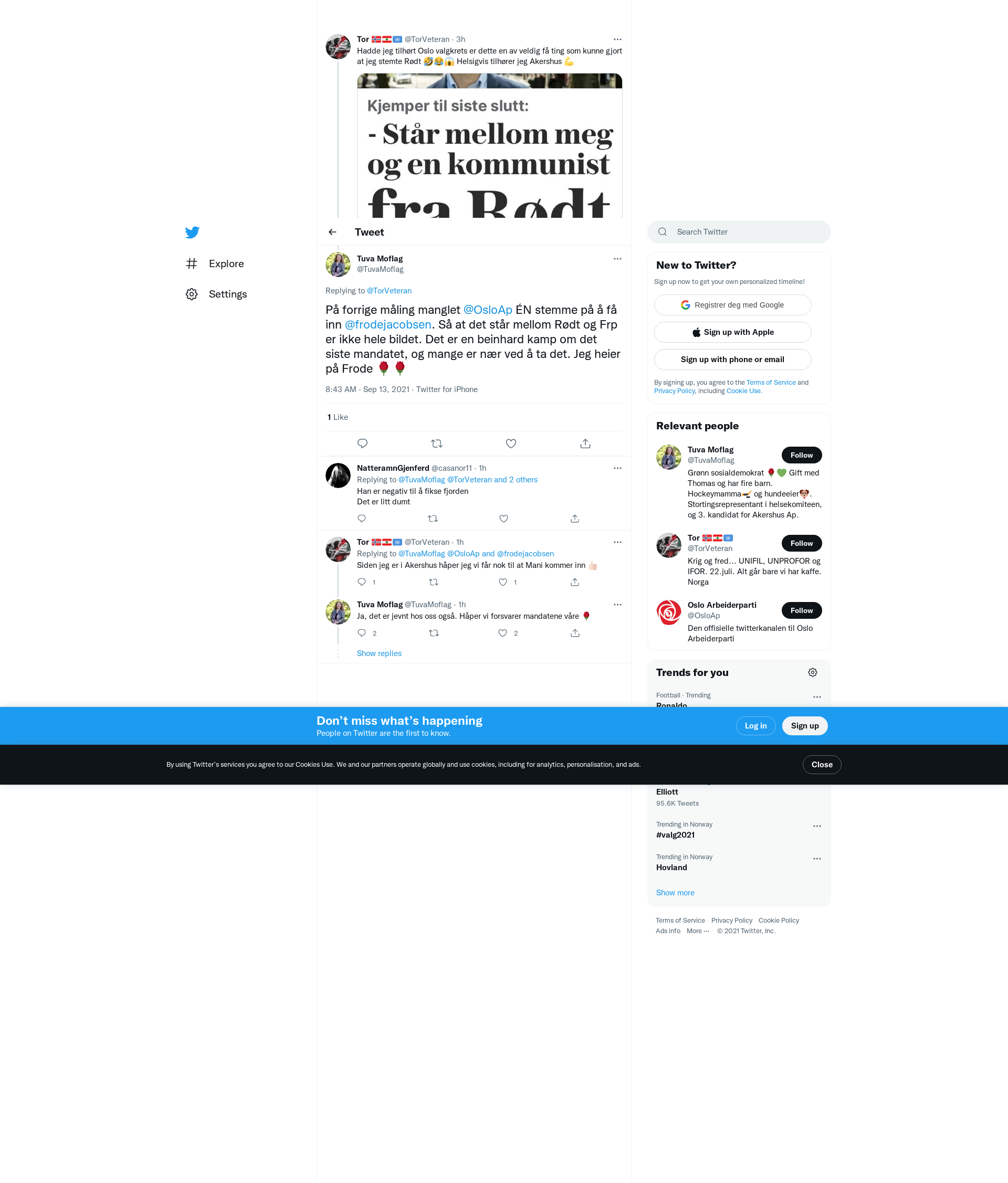 @TorVeteran På forrige måling manglet @OsloAp ÉN stemme på å få inn @frodejacobsen. Så at det står mellom Rødt og Frp er ikke hele bildet. Det er en beinhard kamp om det siste mandatet, og mange er nær ved å ta det. Jeg heier på Frode 🌹🌹