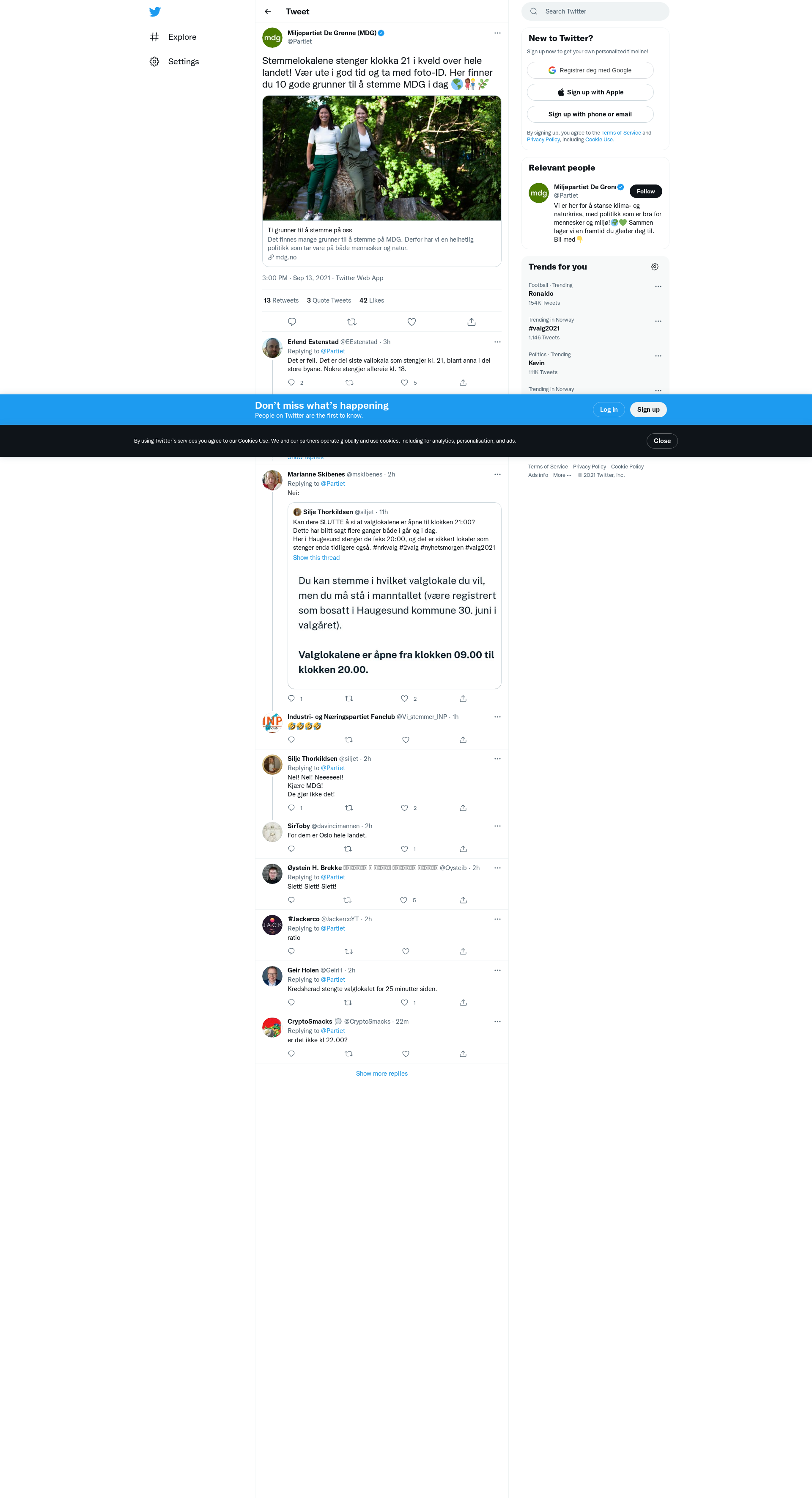 Stemmelokalene stenger klokka 21 i kveld over hele landet! Vær ute i god tid og ta med foto-ID. Her finner du 10 gode grunner til å stemme MDG i dag 🌎👩🏾🤝👨🏼🌿 https://t.co/ufXR54zUzb