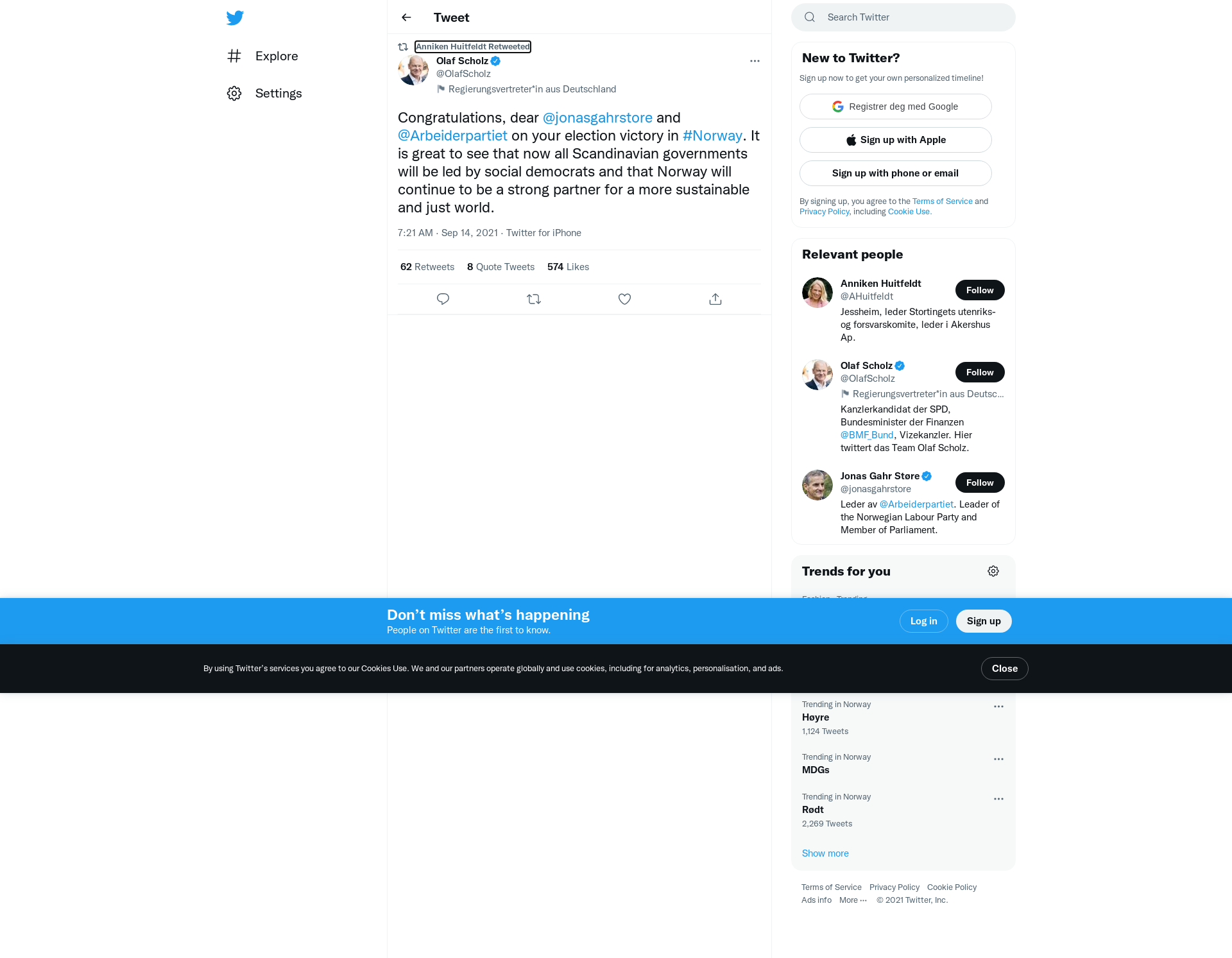 RT @OlafScholz: Congratulations, dear @jonasgahrstore and @Arbeiderpartiet on your election victory in #Norway. It is great to see that now all Scandinavian governments will be led by social democrats and that Norway will continue to be a strong partner for a more sustainable and just world.