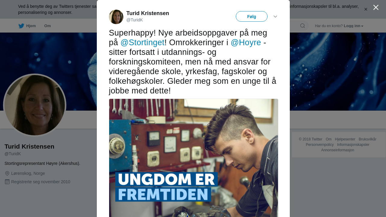 RT @TuridK: Superhappy! Nye arbeidsoppgaver på meg på @Stortinget! Omrokkeringer i @Hoyre - sitter fortsatt i utdannings- og fo… https://t.co/XrcS2N3lOS