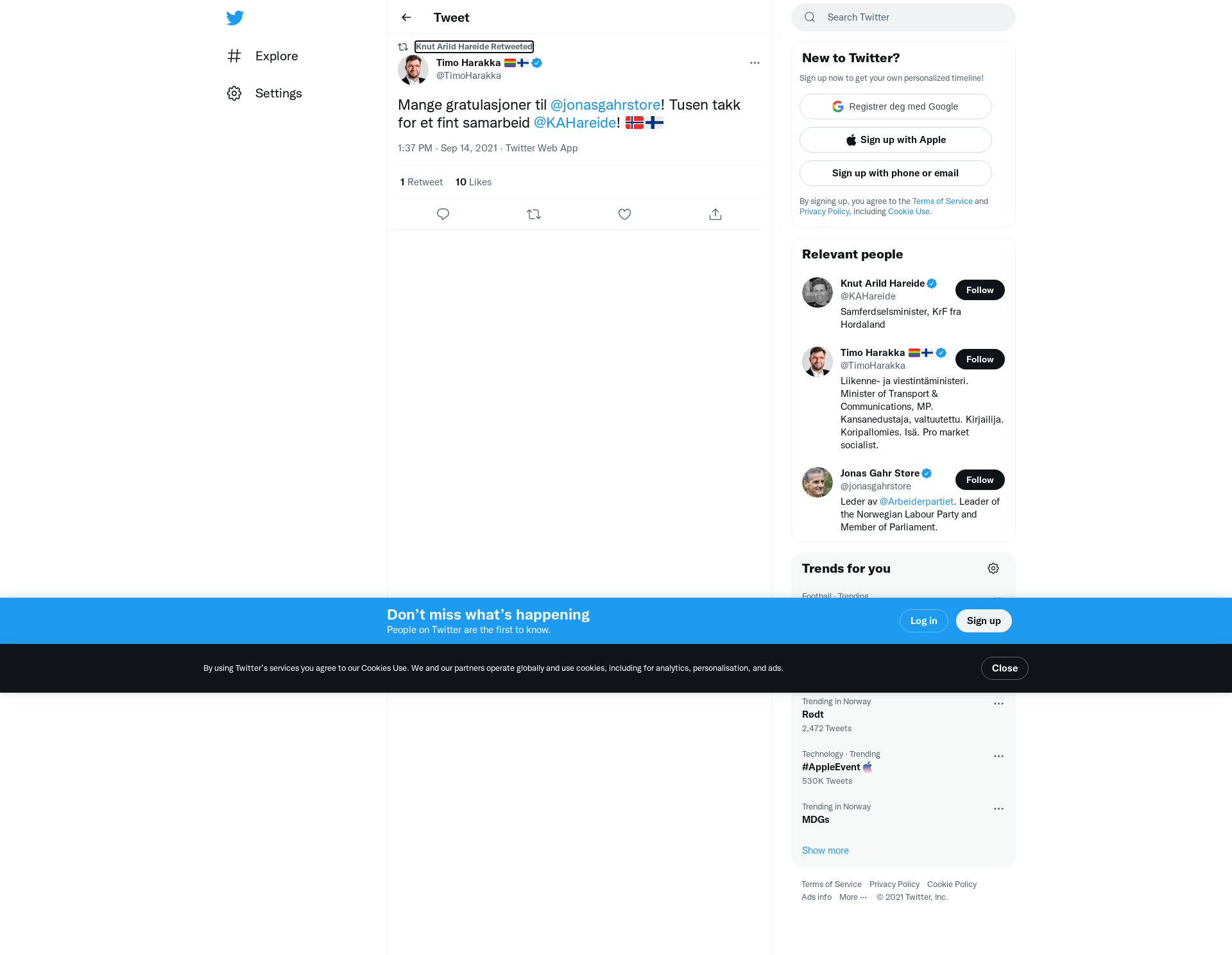 RT @TimoHarakka: Mange gratulasjoner til @jonasgahrstore! Tusen takk for et fint samarbeid @KAHareide! 🇳🇴🇫🇮