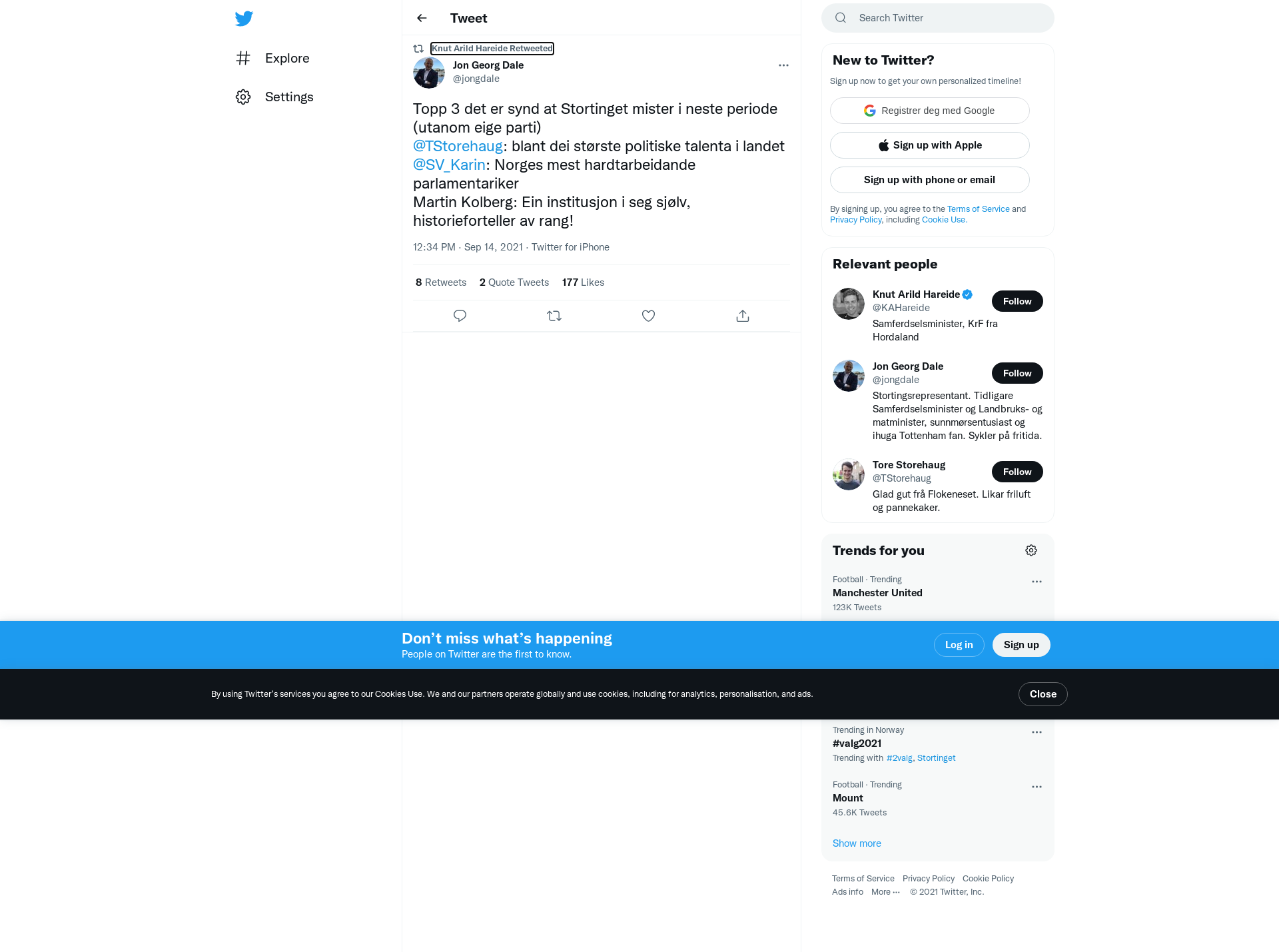 RT @jongdale: Topp 3 det er synd at Stortinget mister i neste periode (utanom eige parti) @TStorehaug: blant dei største politiske talenta…