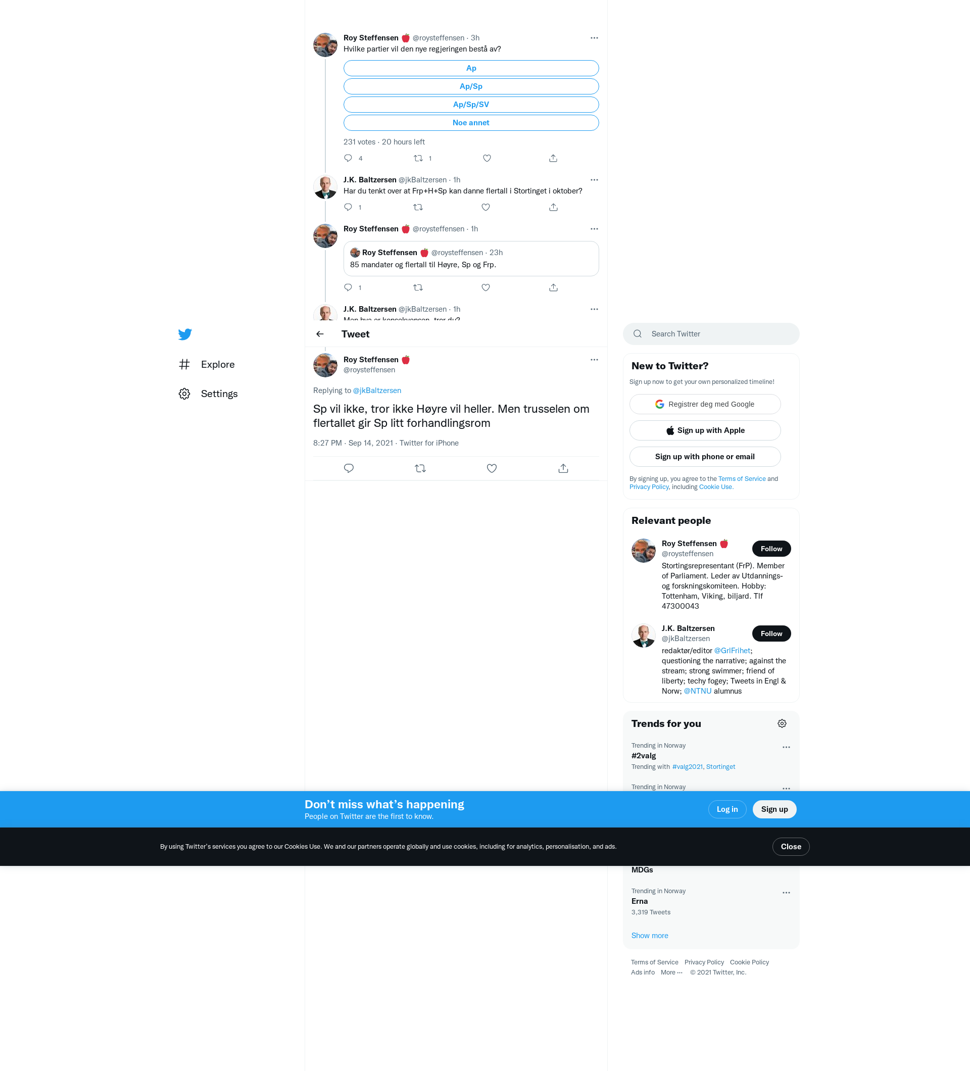 @jkBaltzersen Sp vil ikke, tror ikke Høyre vil heller. Men trusselen om flertallet gir Sp litt forhandlingsrom