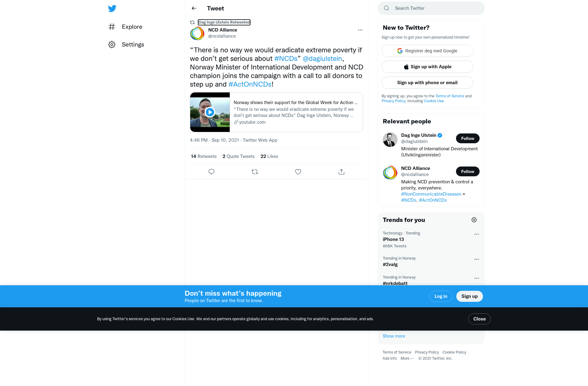 RT @ncdalliance: “There is no way we would eradicate extreme poverty if we don’t get serious about #NCDs” @dagiulstein, Norway Minister of International Development and NCD champion joins the campaign with a call to all donors to step up and #ActOnNCDs!