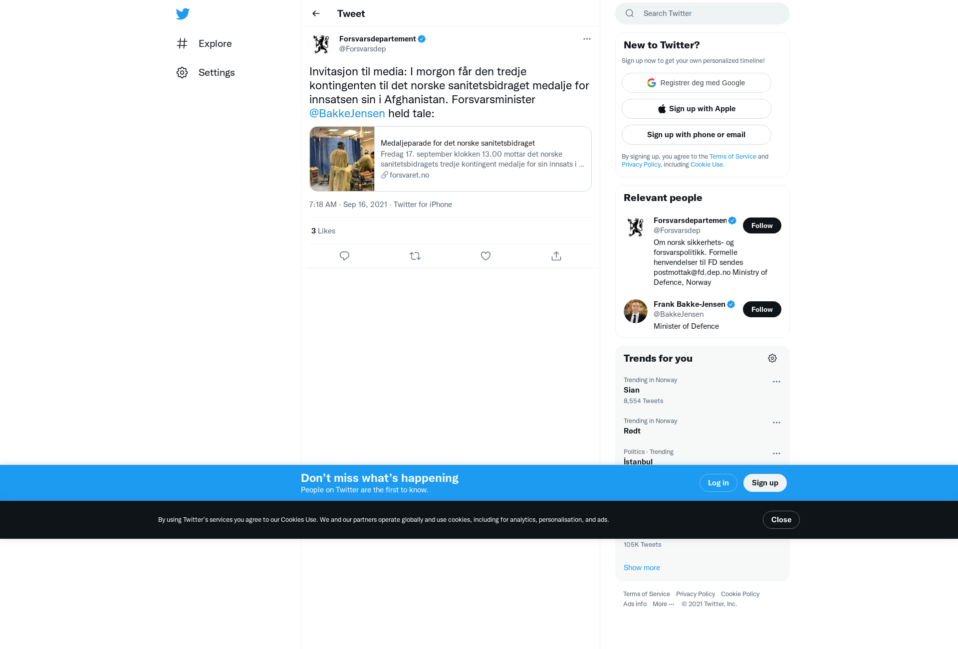 Fredag 17. september klokken 13.00 mottar det norske sanitetsbidragets tredje kontingent medalje for sin innsats i Afghanistan på Akershus festning. Media inviteres til å overvære medaljeparaden.
