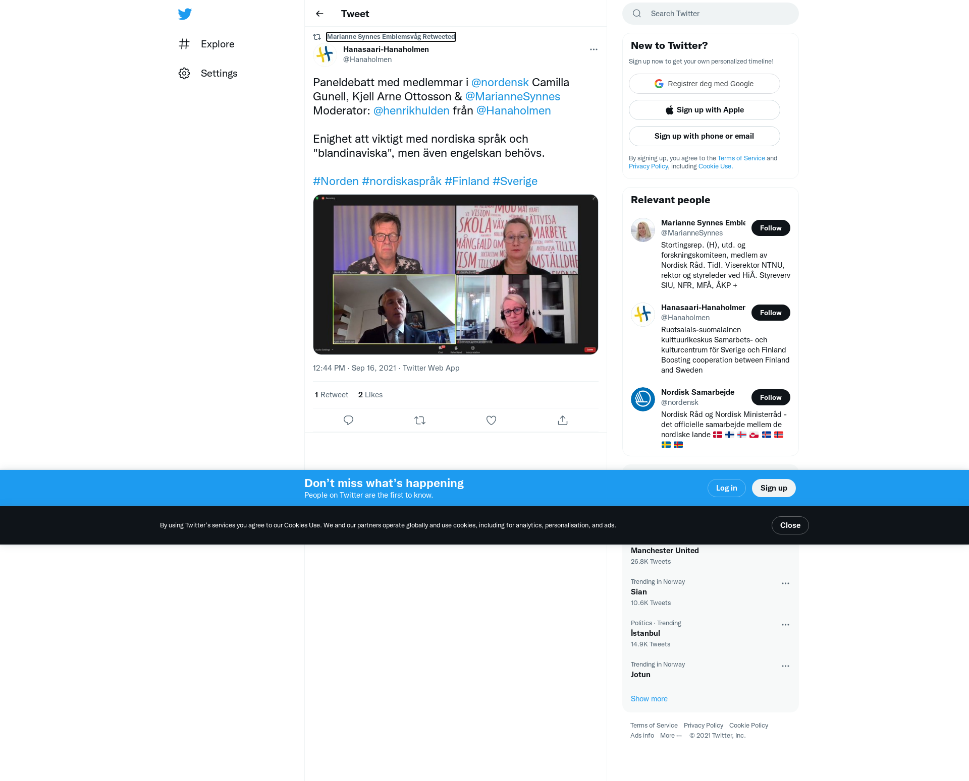 RT @Hanaholmen: Paneldebatt med medlemmar i @nordensk Camilla Gunell, Kjell Arne Ottosson & @MarianneSynnes Moderator: @henrikhulden från @Hanaholmen
