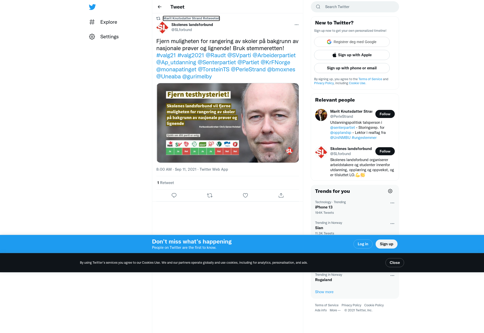 RT @SLforbund: Fjern muligheten for rangering av skoler på bakgrunn av nasjonale prøver og lignende! Bruk stemmeretten! #valg21 #valg2021 @Raudt @SVparti @Arbeiderpartiet @Ap_utdanning @Senterpartiet @Partiet @KrFNorge @monapatinget @TorsteinTS @PerleStrand @bmoxnes @Uneaba @gurimelby https://t.co/aPqSYZ29mg