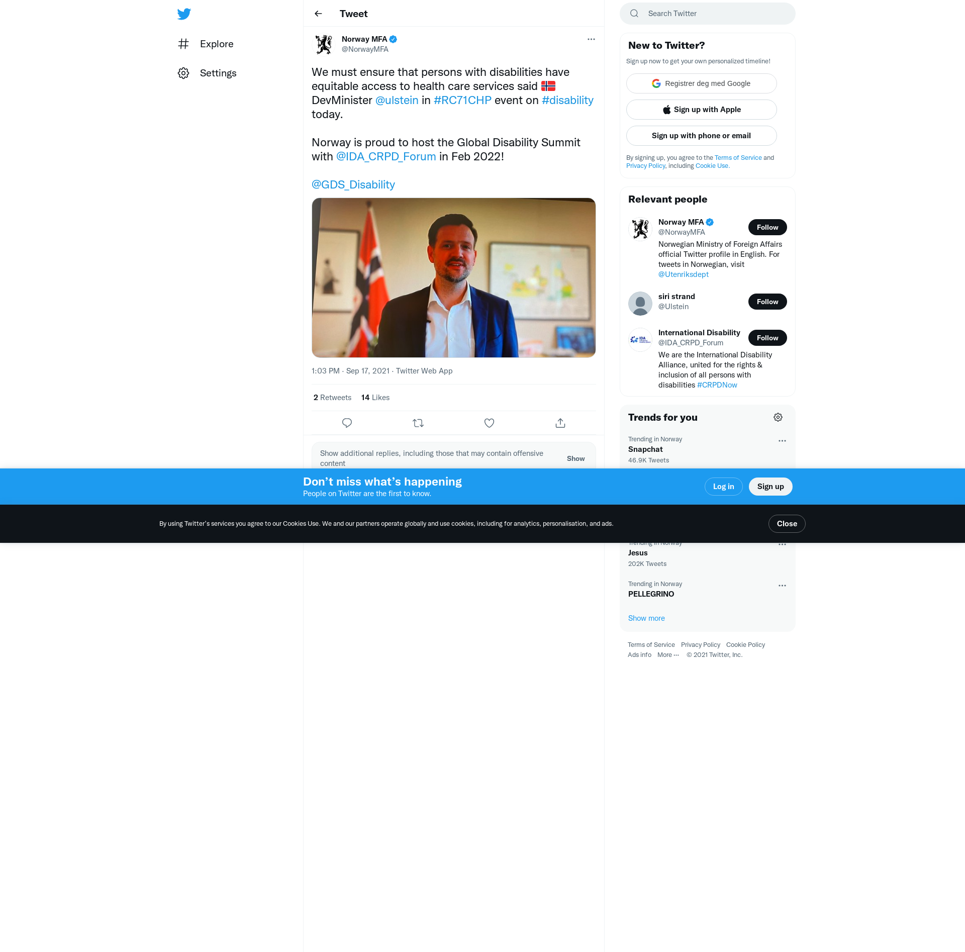 Norway is proud to host the Global Disability Summit with @IDA_CRPD_Forum in Feb 2022!
